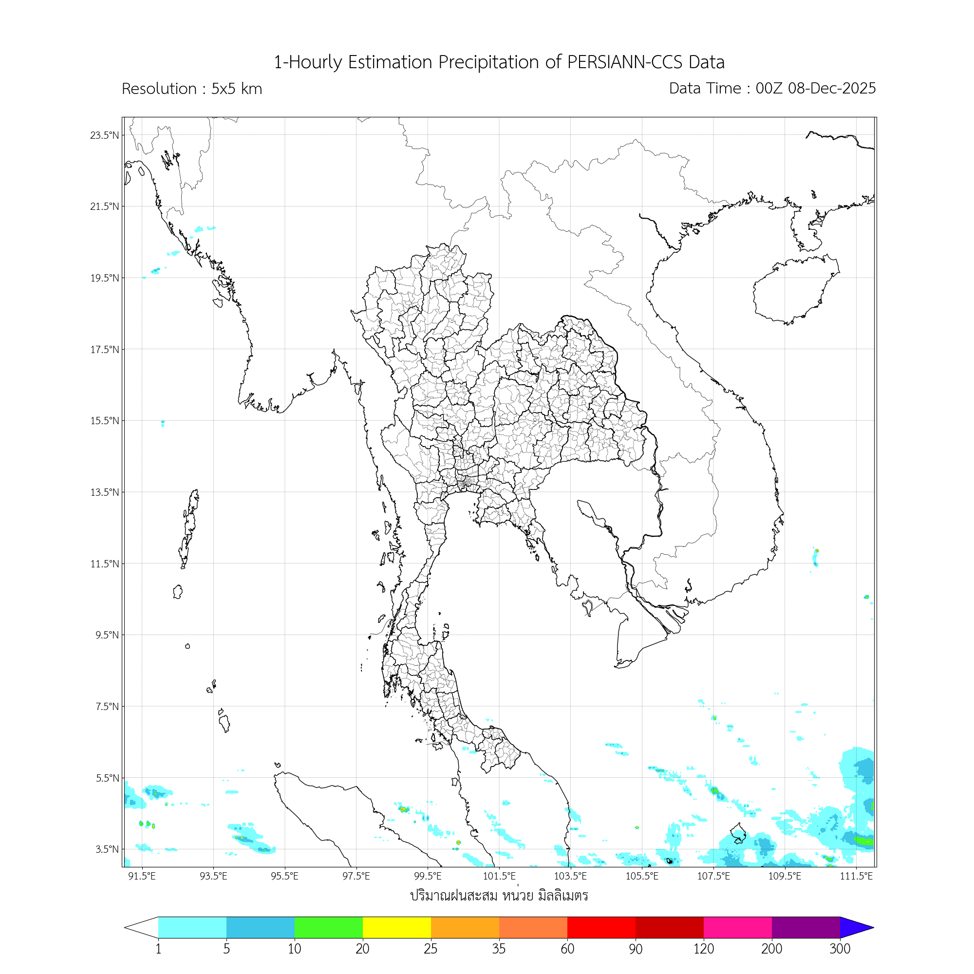 การประมาณค่าฝนจากดาวเทียม เมื่อวาน (07/12/2025)
