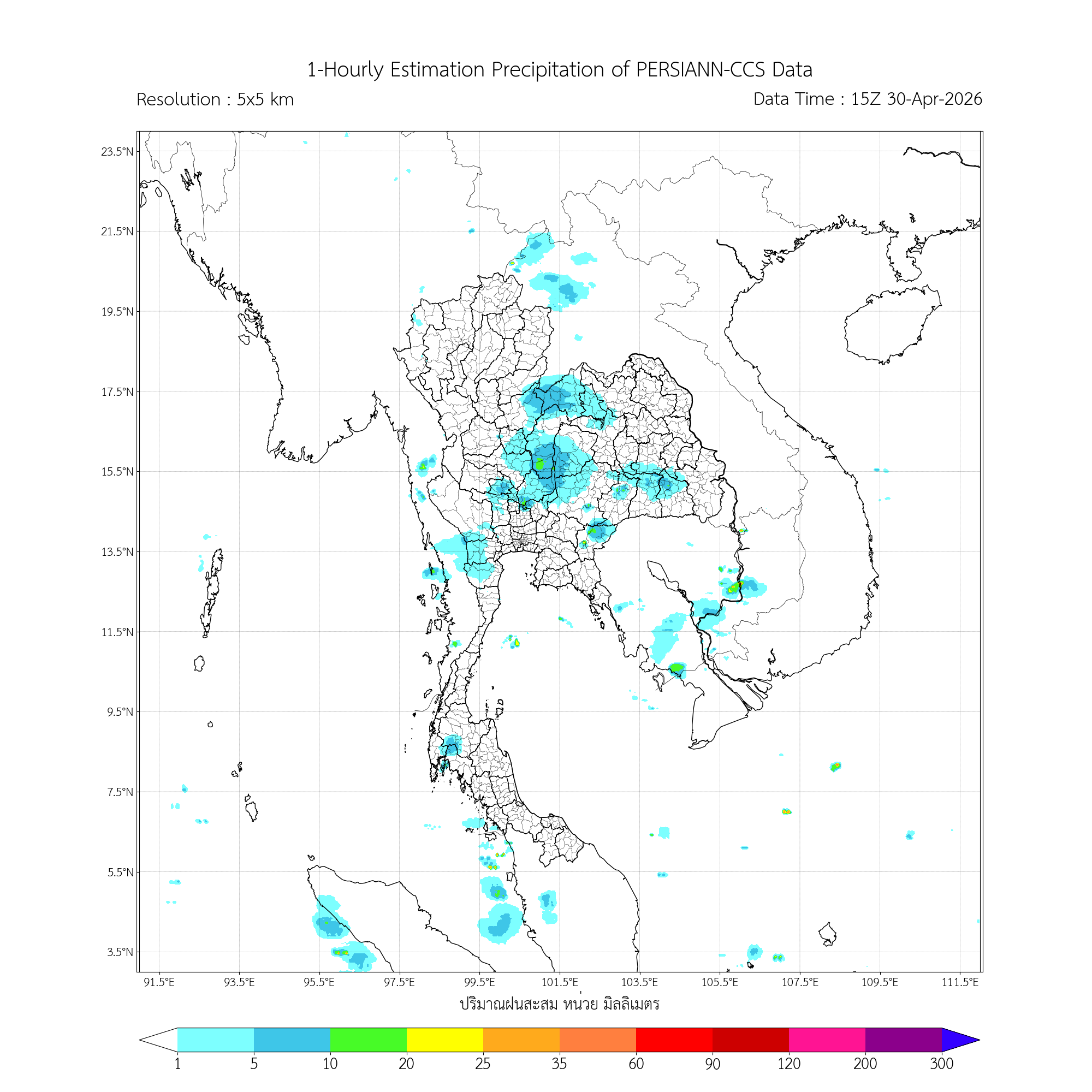 การประมาณค่าฝนจากดาวเทียม เมื่อวาน (30/04/2026)