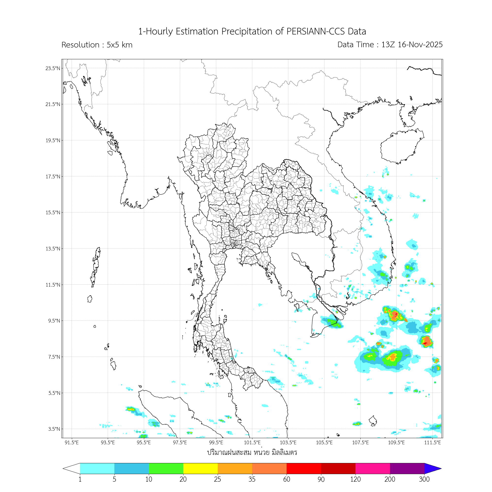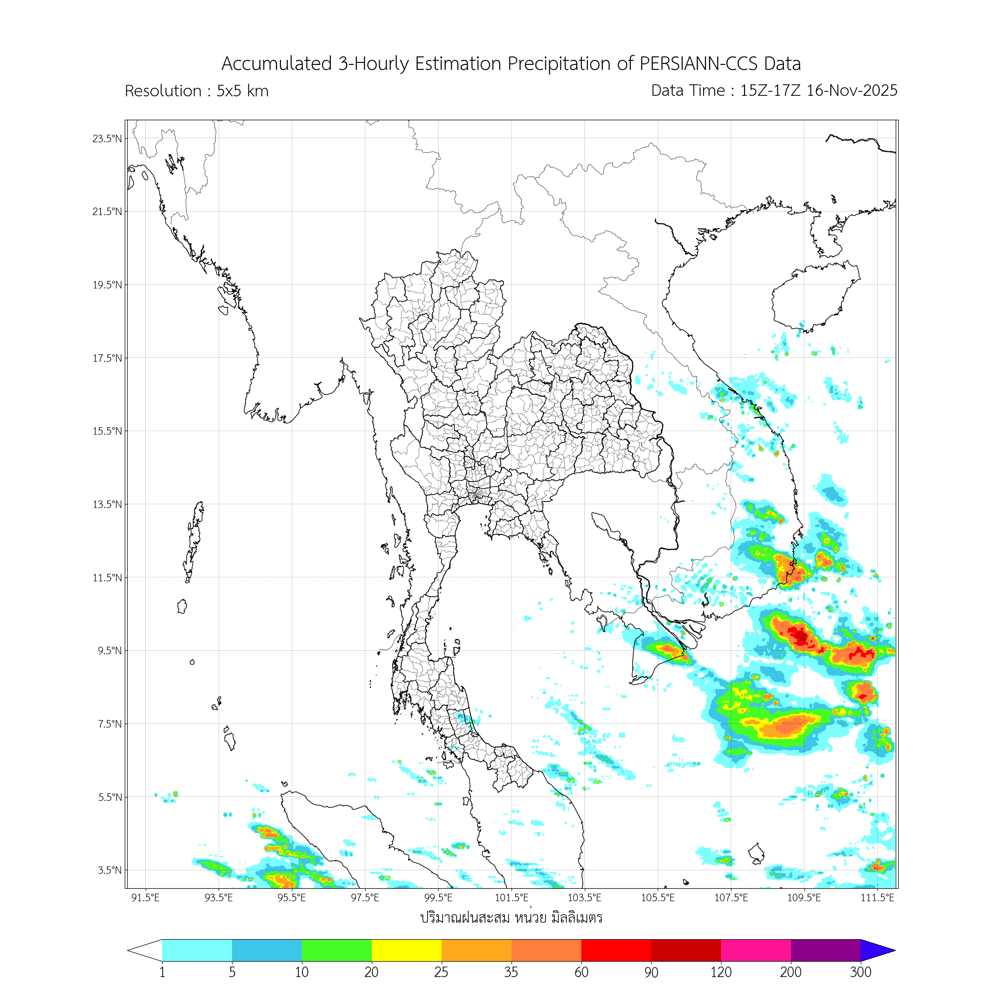 การประมาณค่าฝนจากดาวเทียม เมื่อวาน (15/11/2025)