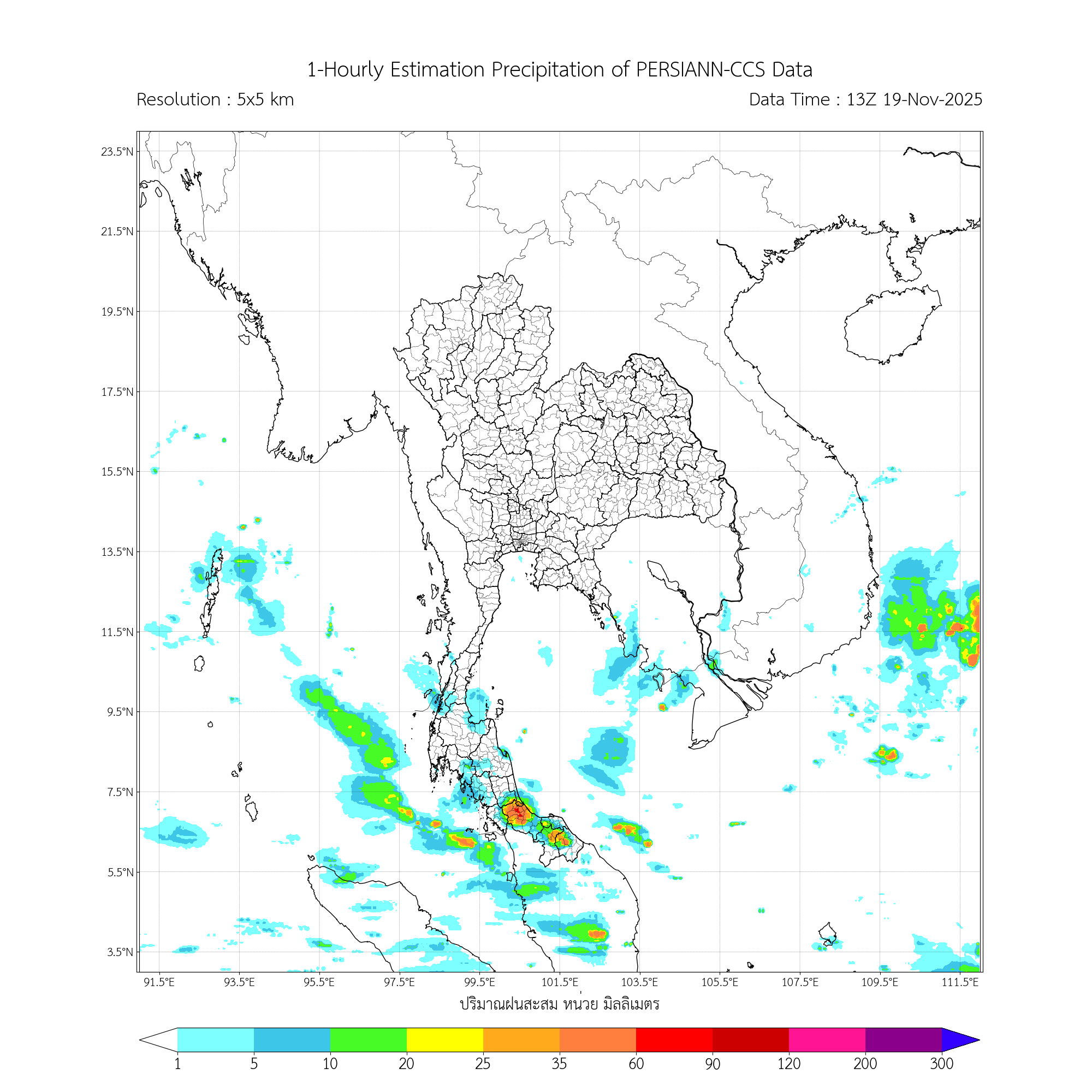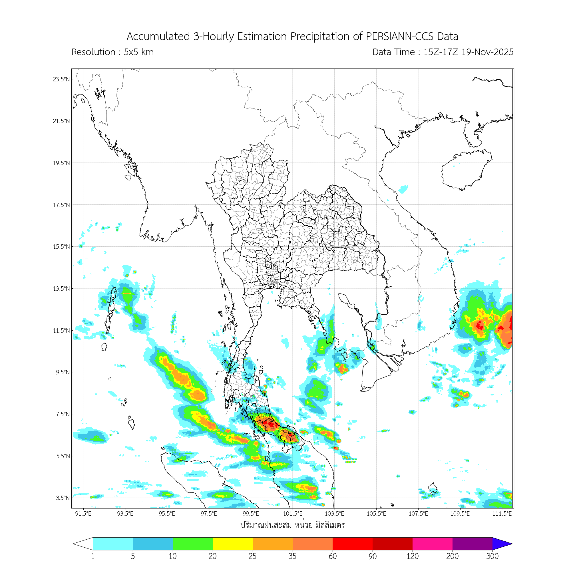 การประมาณค่าฝนจากดาวเทียม เมื่อวาน (18/11/2025)