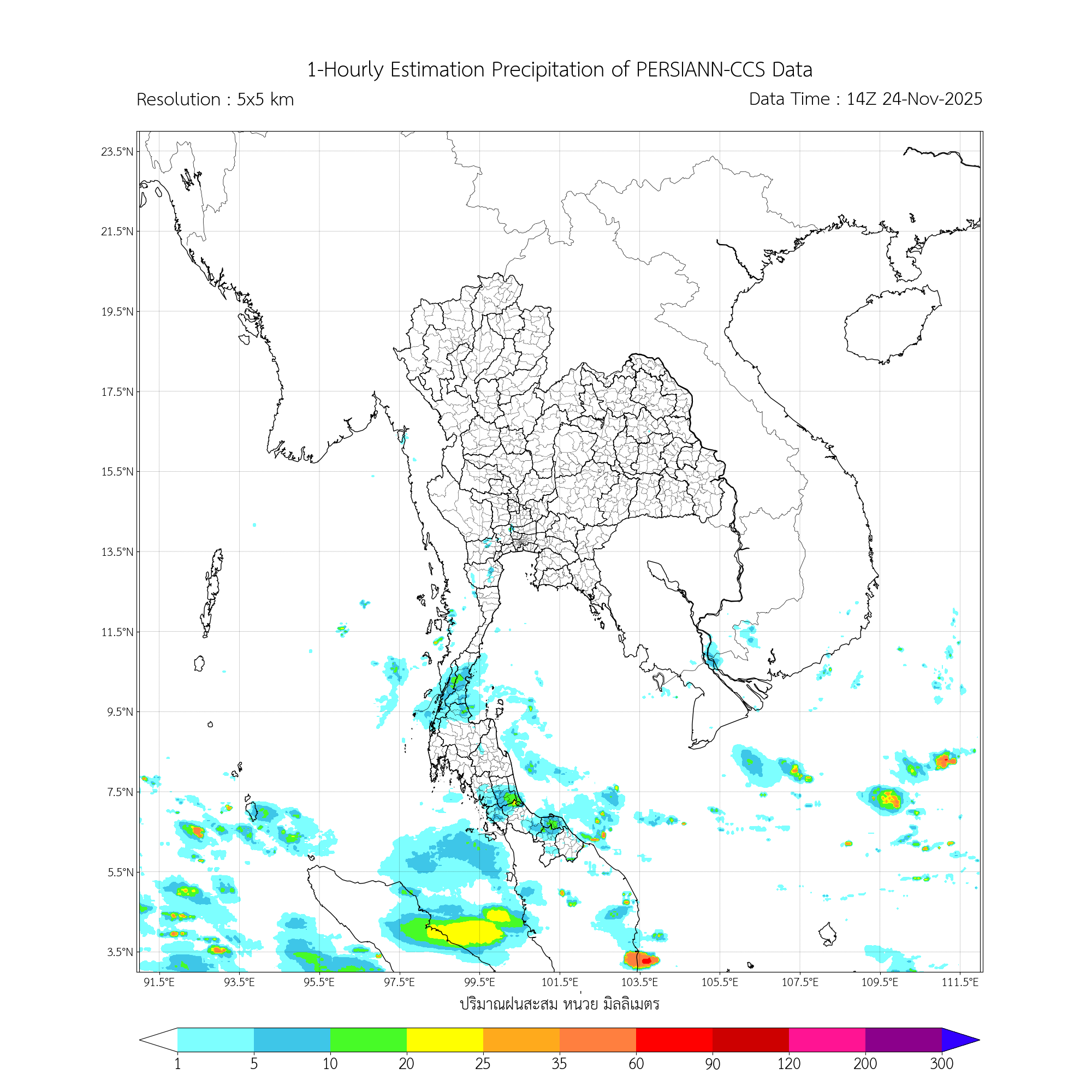 การประมาณค่าฝนจากดาวเทียม เมื่อวาน (23/11/2025)