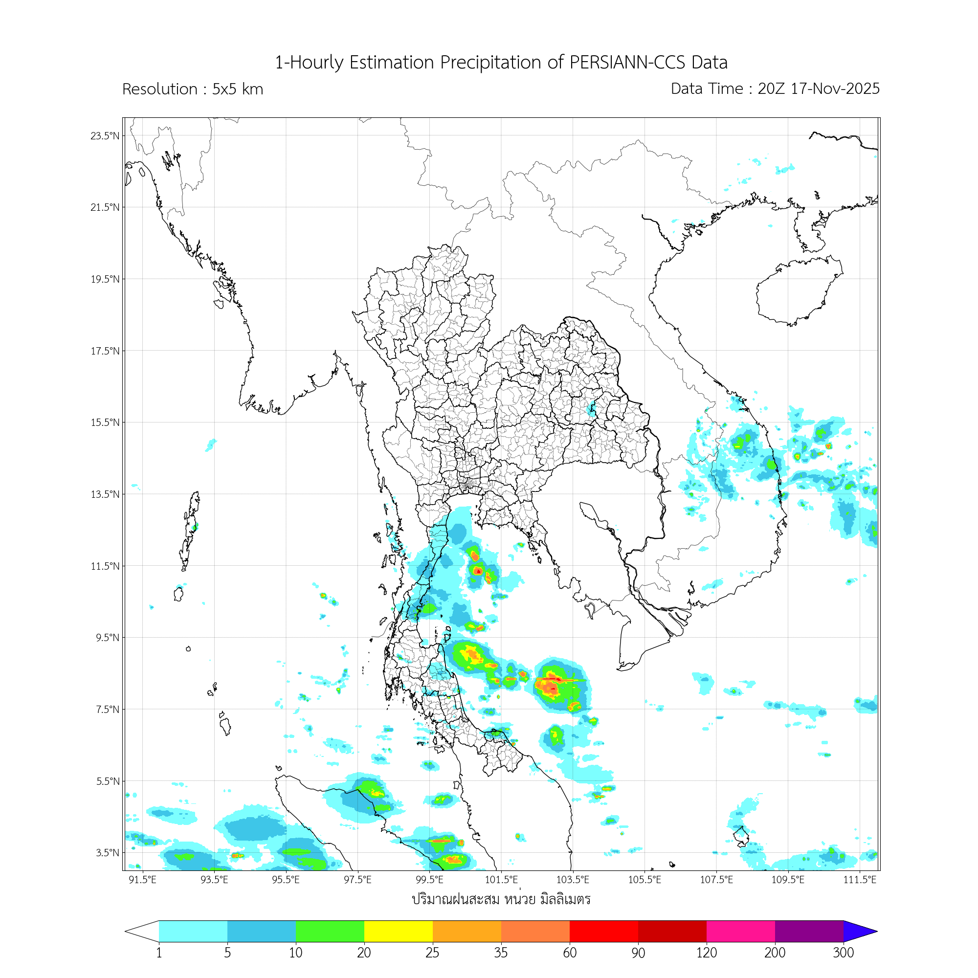การประมาณค่าฝนจากดาวเทียม เมื่อวาน (17/11/2025)