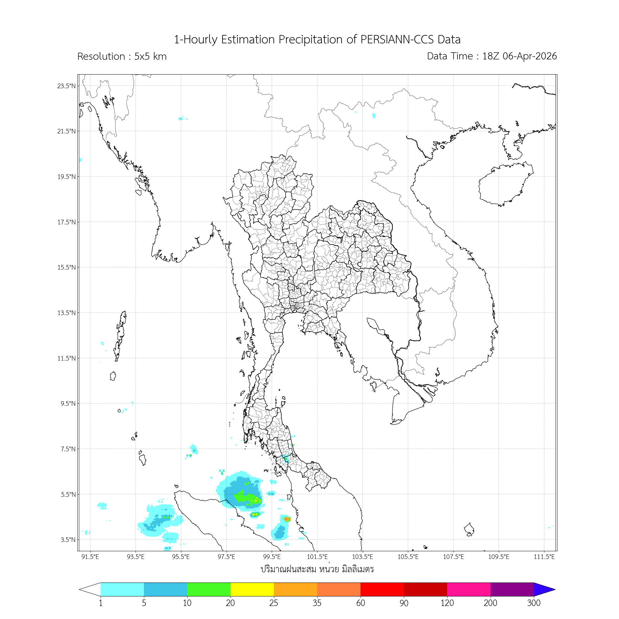 การประมาณค่าฝนจากดาวเทียม เมื่อวาน (06/04/2026)