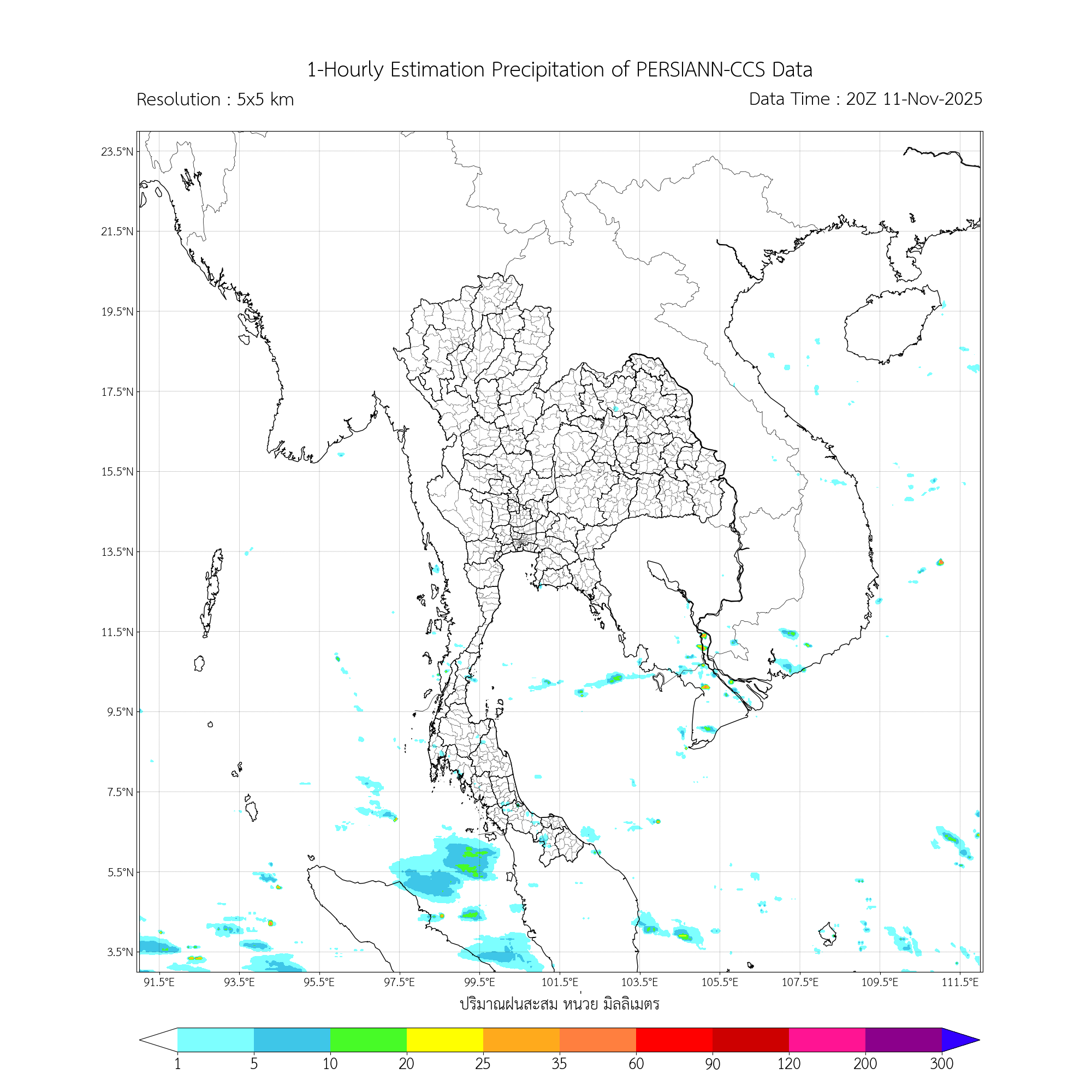 การประมาณค่าฝนจากดาวเทียม เมื่อวาน (11/11/2025)
