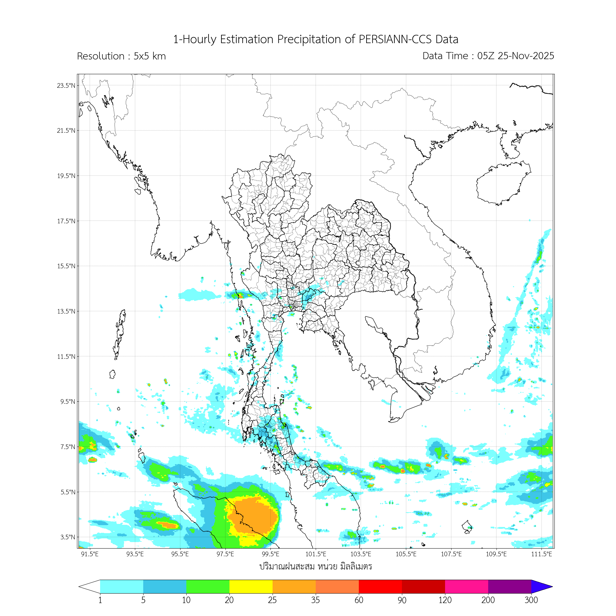 การประมาณค่าฝนจากดาวเทียม เมื่อวาน (24/11/2025)