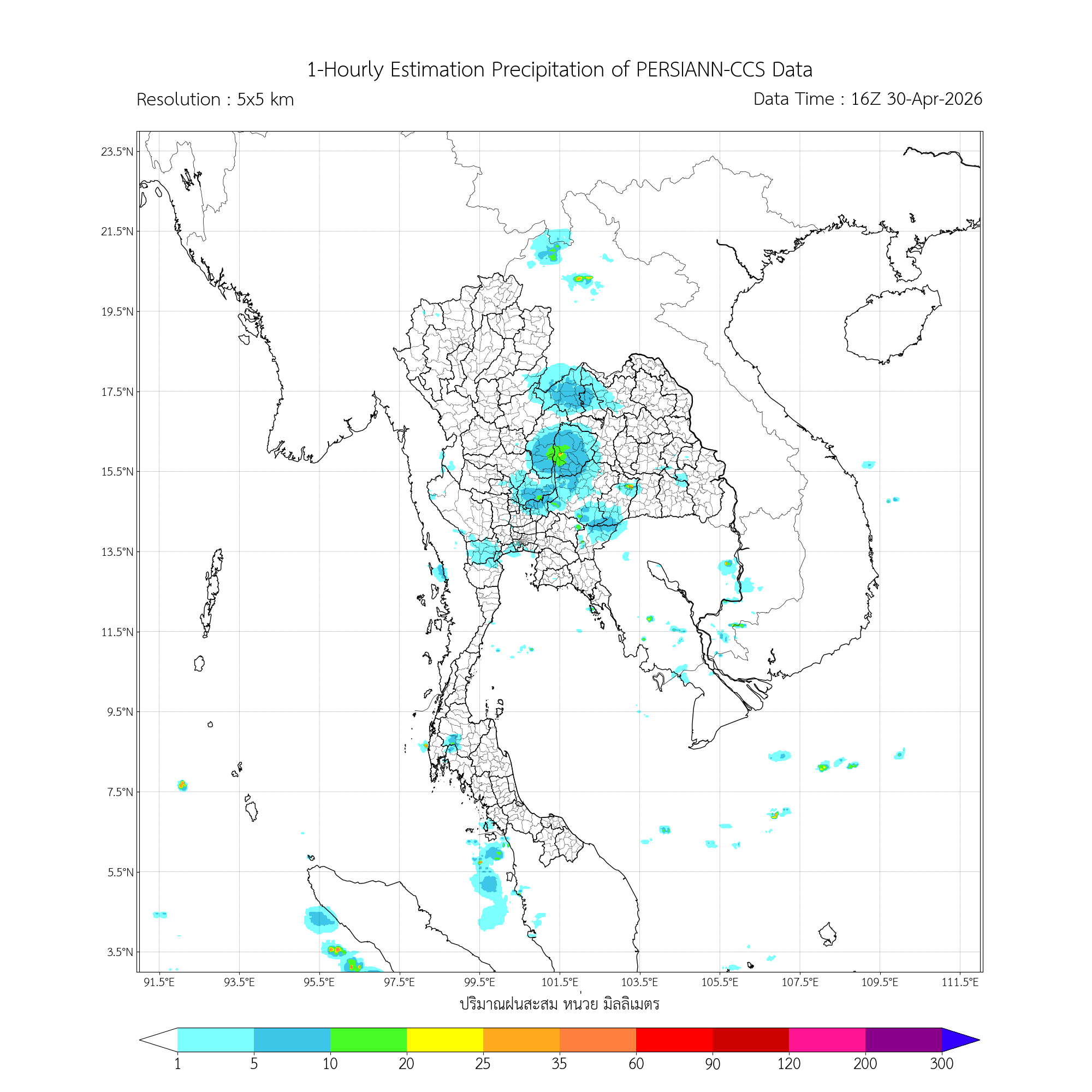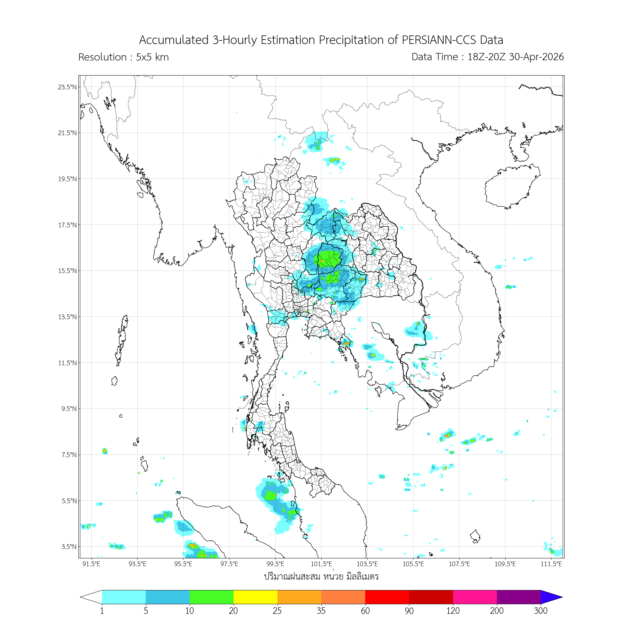 การประมาณค่าฝนจากดาวเทียม เมื่อวาน (30/04/2026)