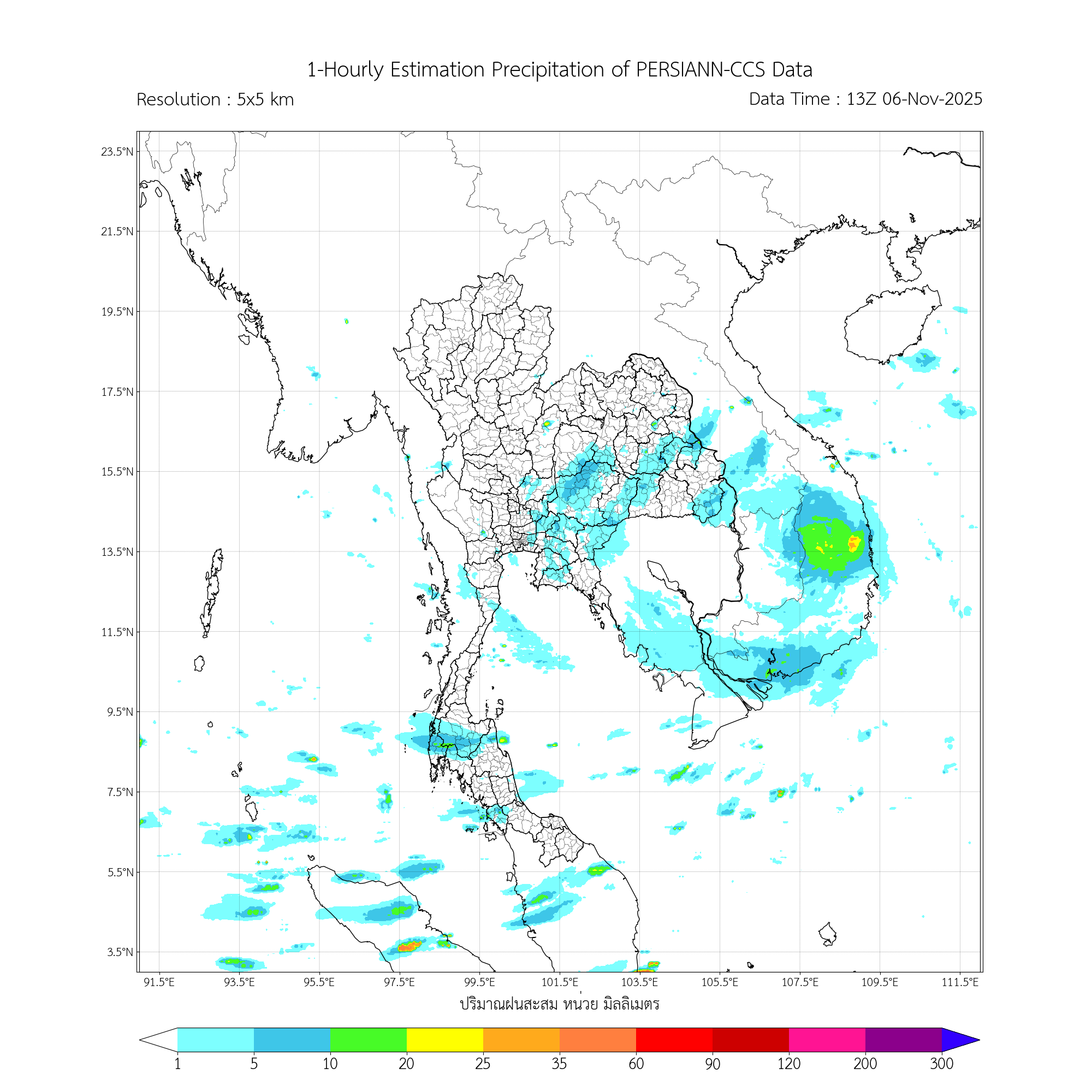 การประมาณค่าฝนจากดาวเทียม เมื่อวาน (05/11/2025)