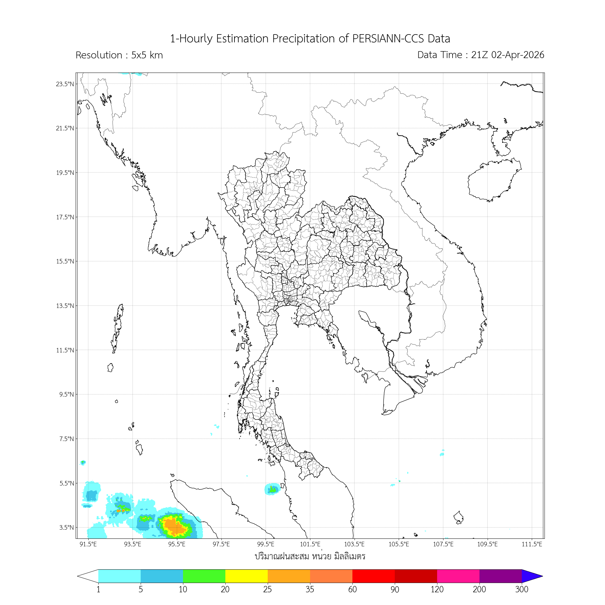 การประมาณค่าฝนจากดาวเทียม เมื่อวาน (02/04/2026)