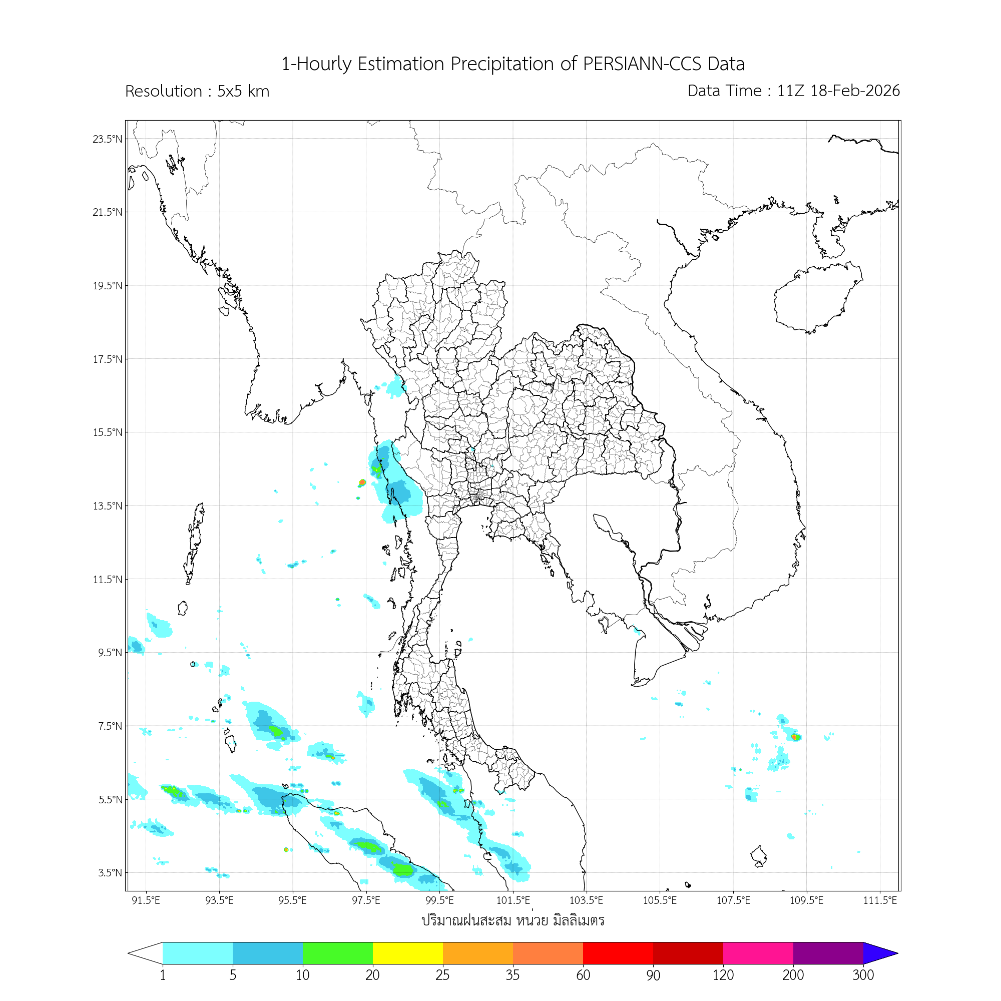การประมาณค่าฝนจากดาวเทียม เมื่อวาน (17/02/2026)