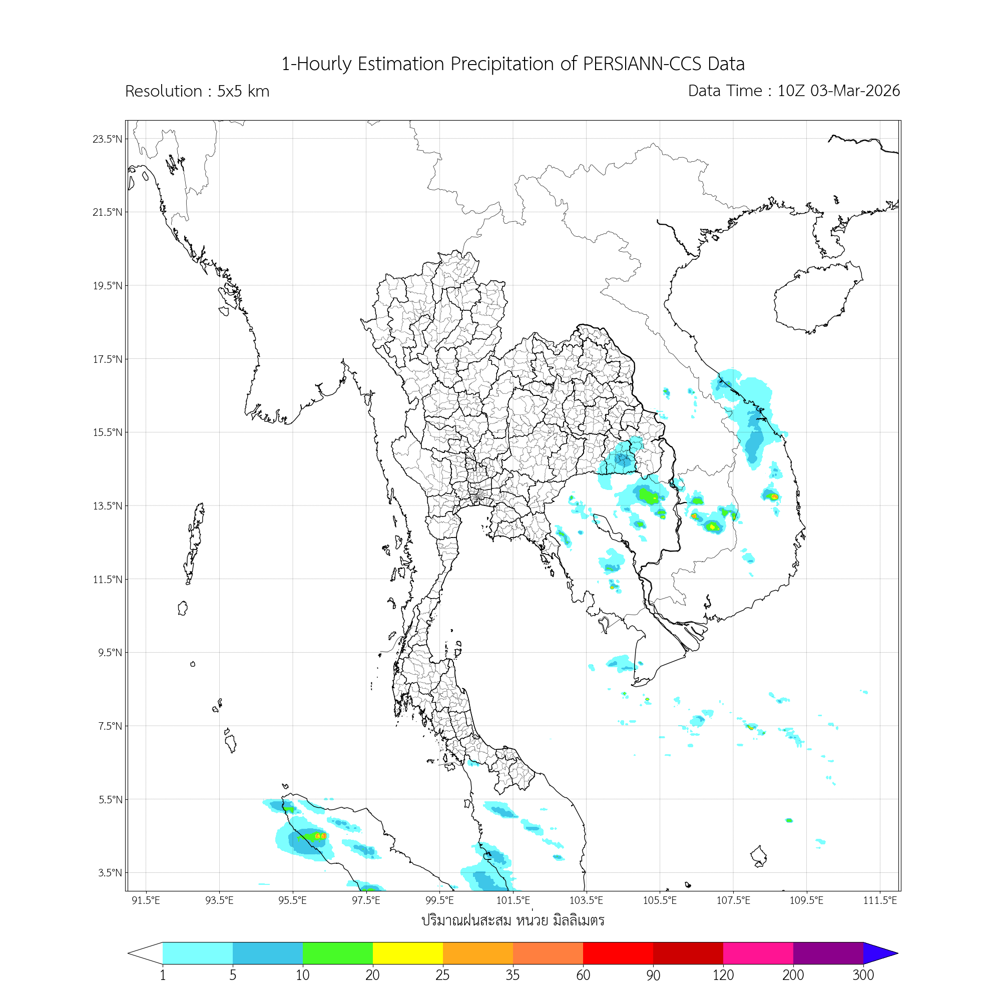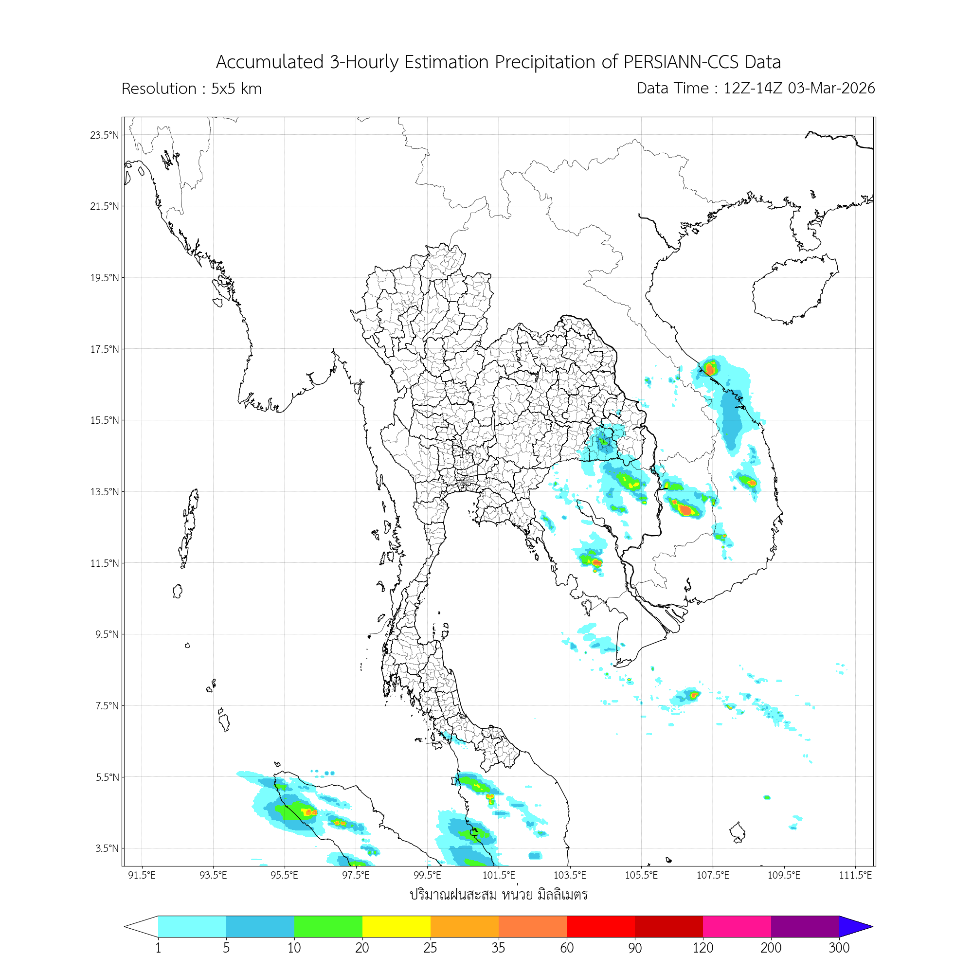 ค่าประมาณฝนสะสม 3 ชั่วโมง จากดาวเทียมอุตุนิยมวิทยา