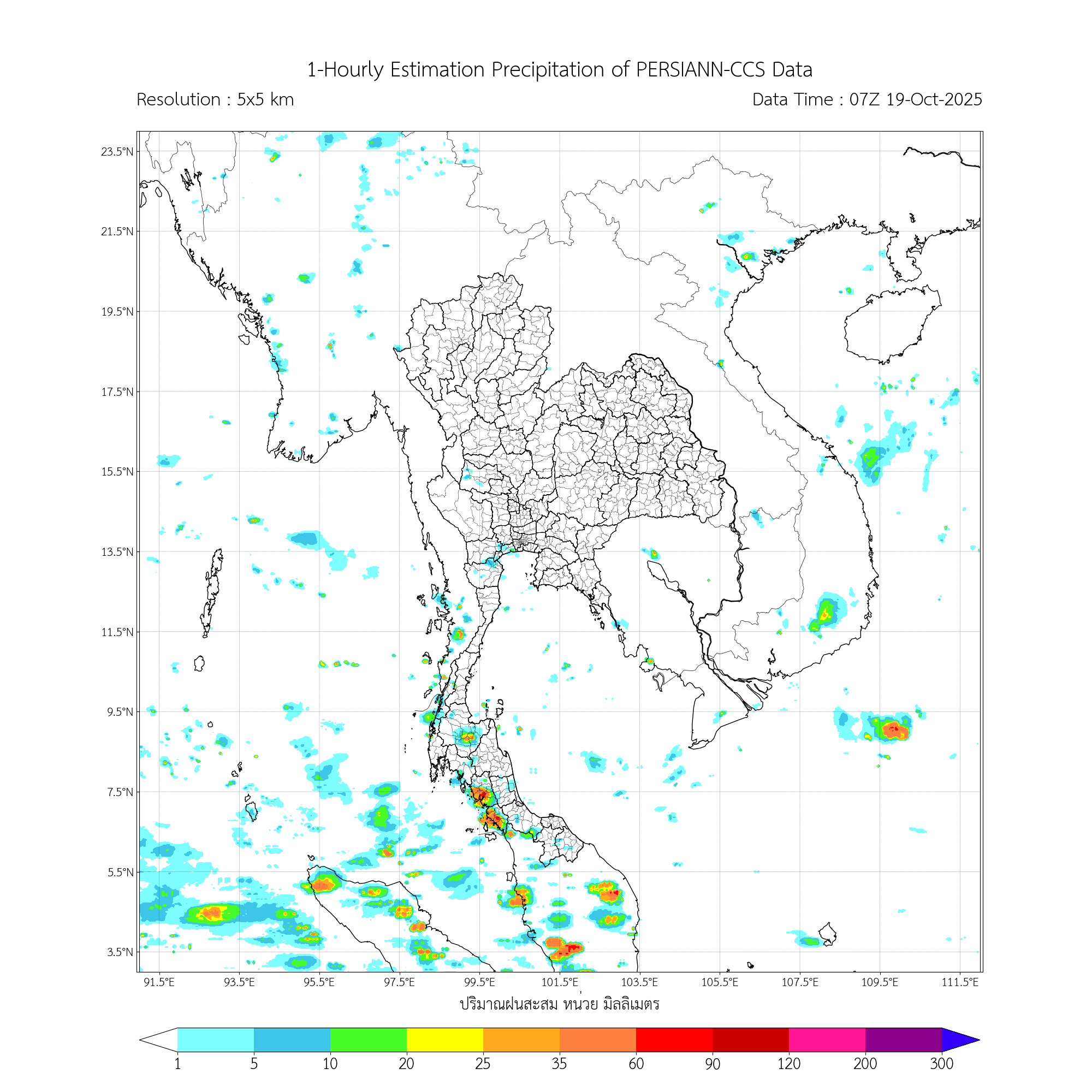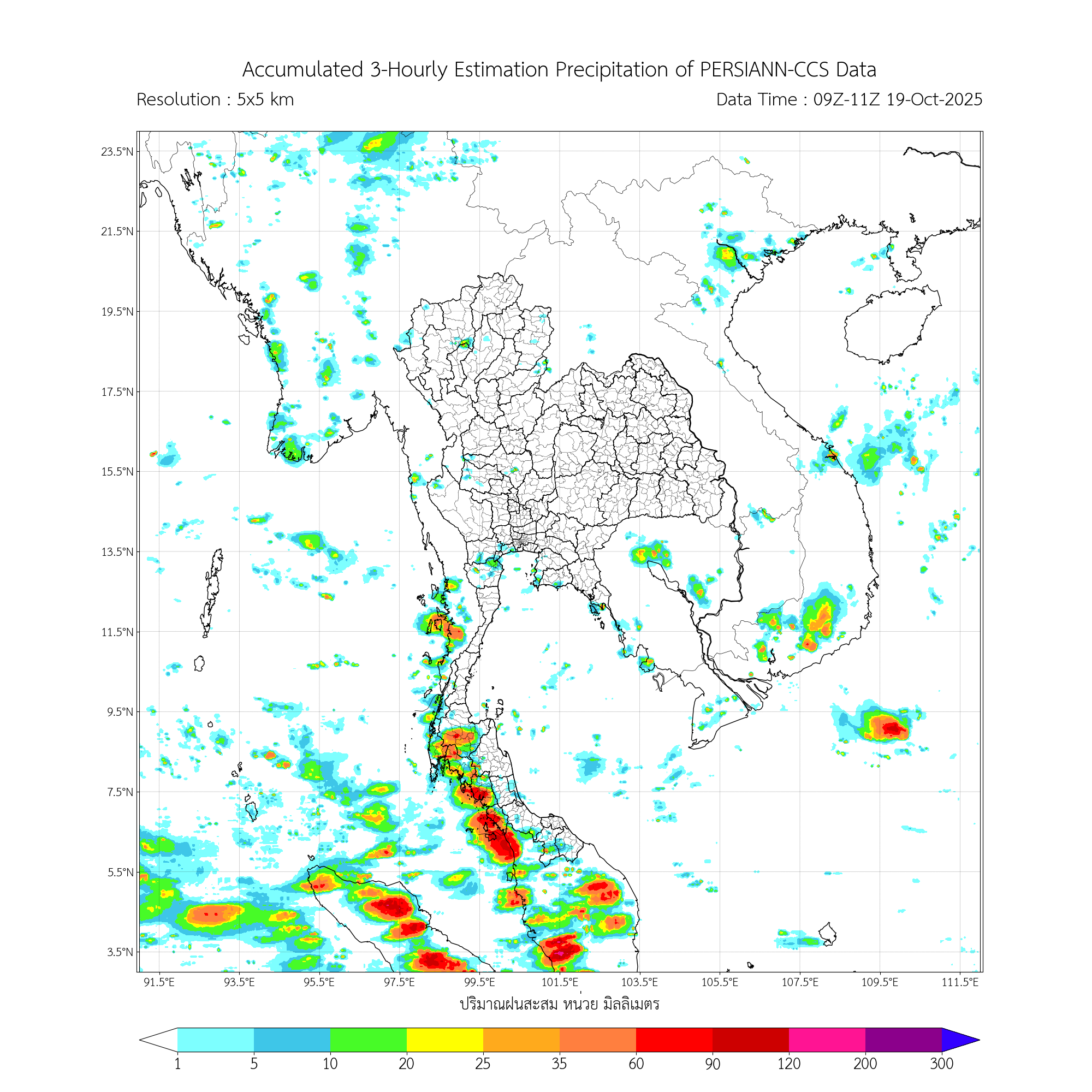การประมาณค่าฝนจากดาวเทียม เมื่อวาน (18/10/2025)