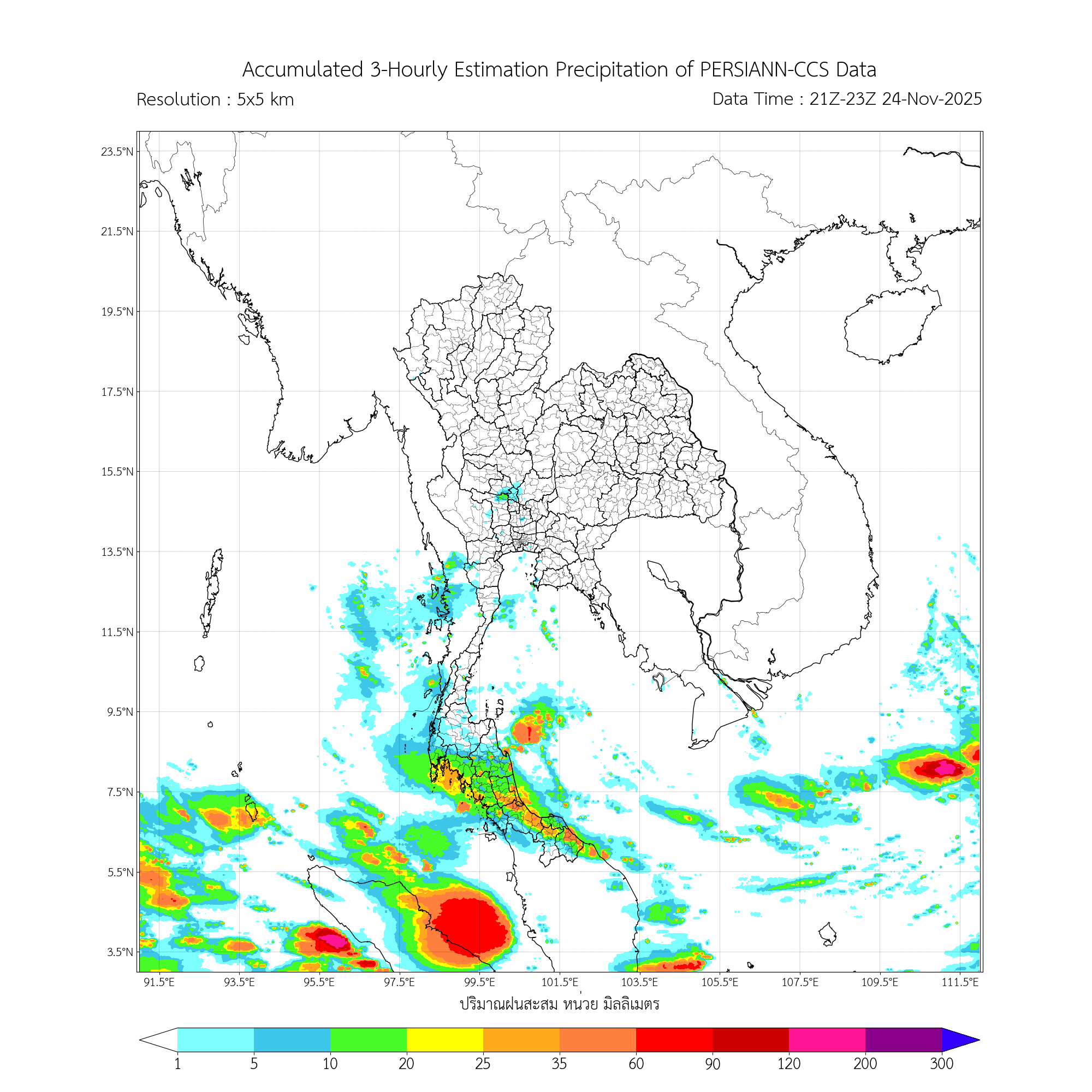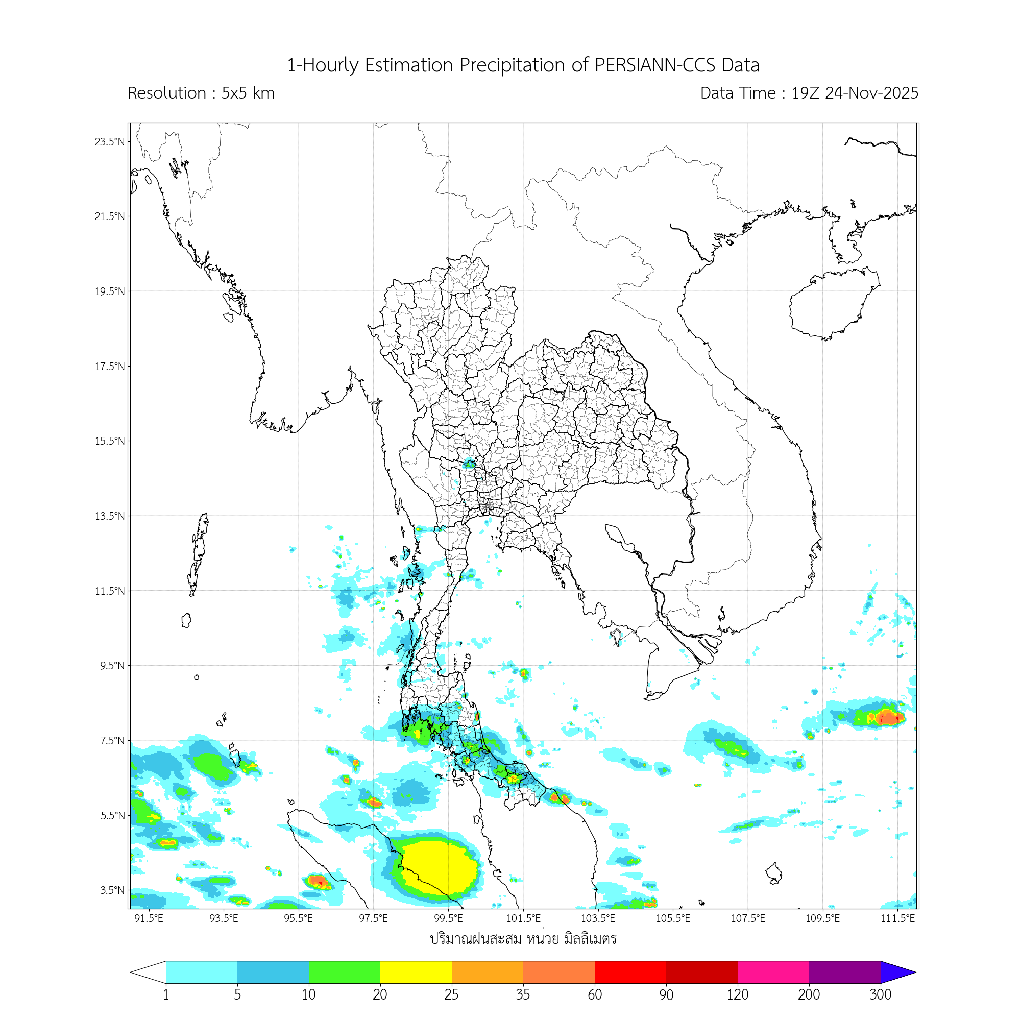 การประมาณค่าฝนจากดาวเทียม เมื่อวาน (24/11/2025)