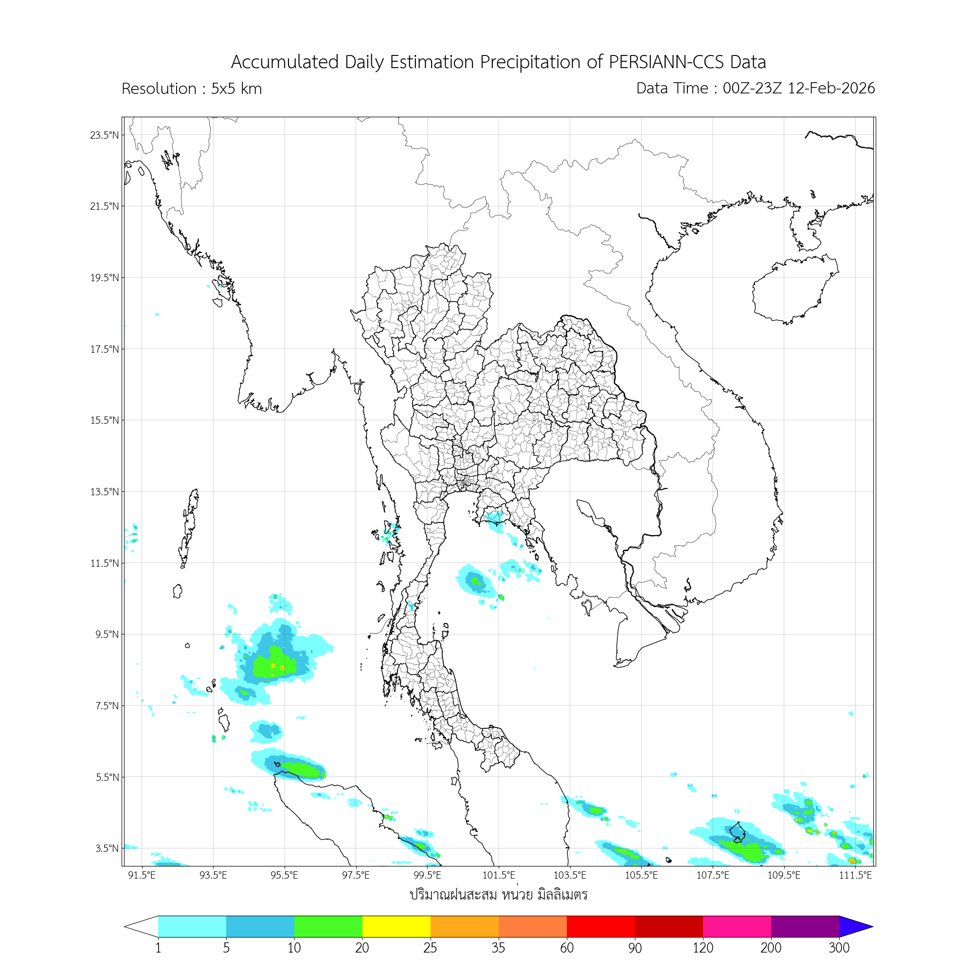 การประมาณค่าฝนจากดาวเทียม เมื่อวาน (11/02/2026)
