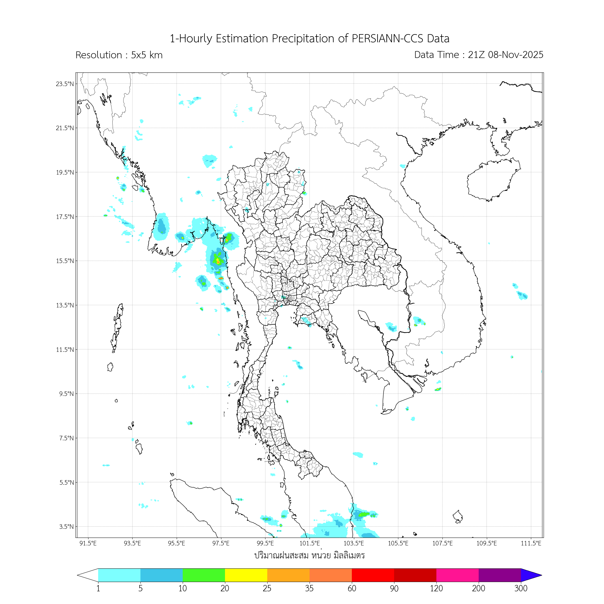 การประมาณค่าฝนจากดาวเทียม เมื่อวาน (08/11/2025)