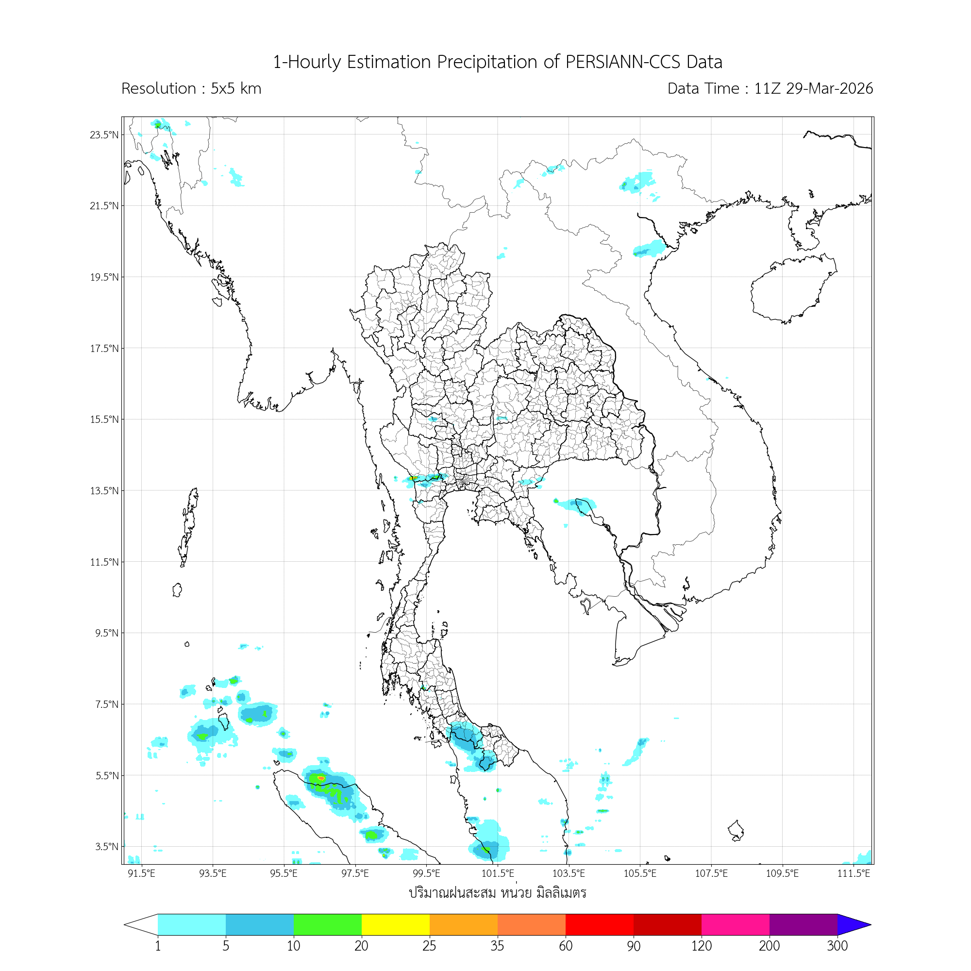 การประมาณค่าฝนจากดาวเทียม เมื่อวาน (28/03/2026)