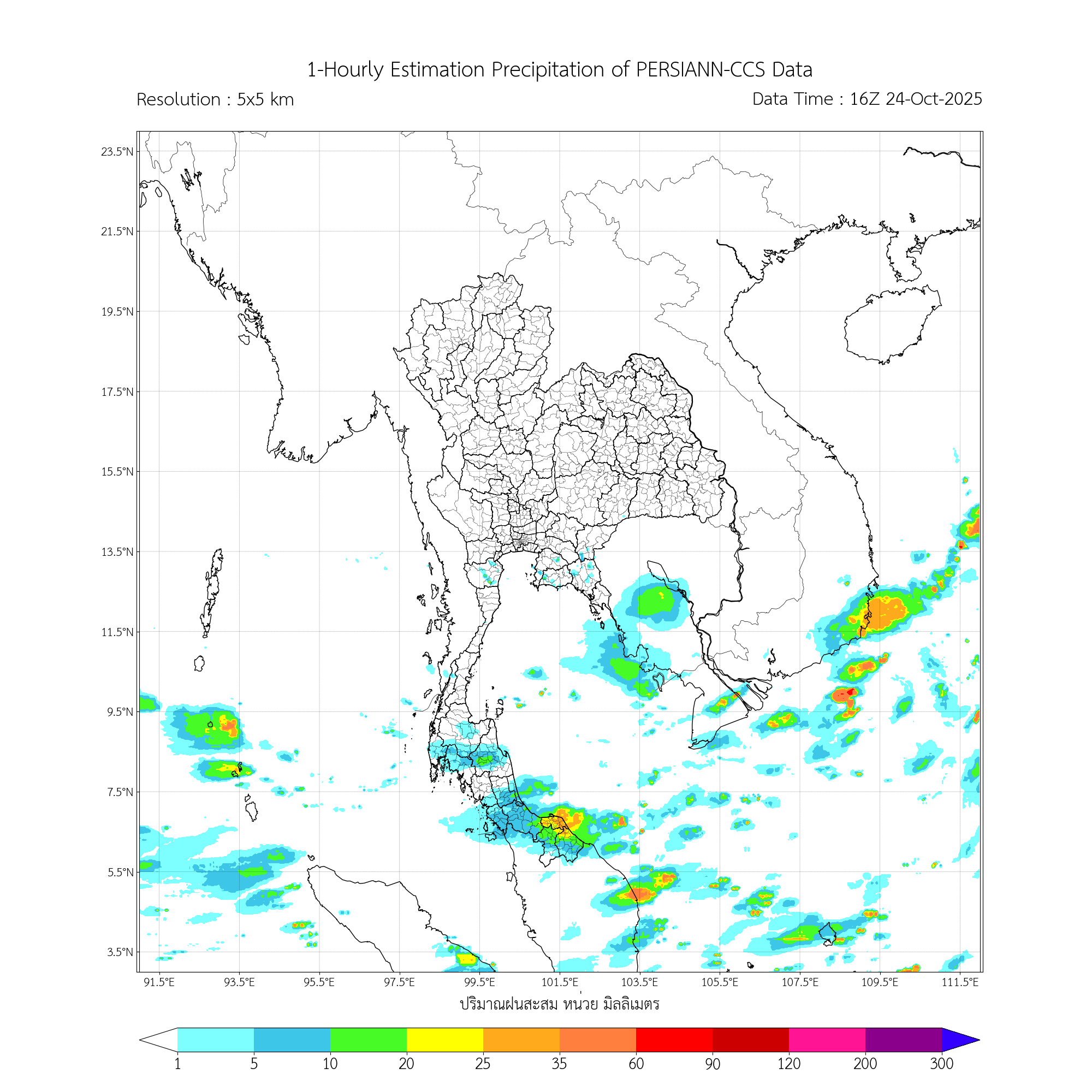 การประมาณค่าฝนจากดาวเทียม เมื่อวาน (24/10/2025)