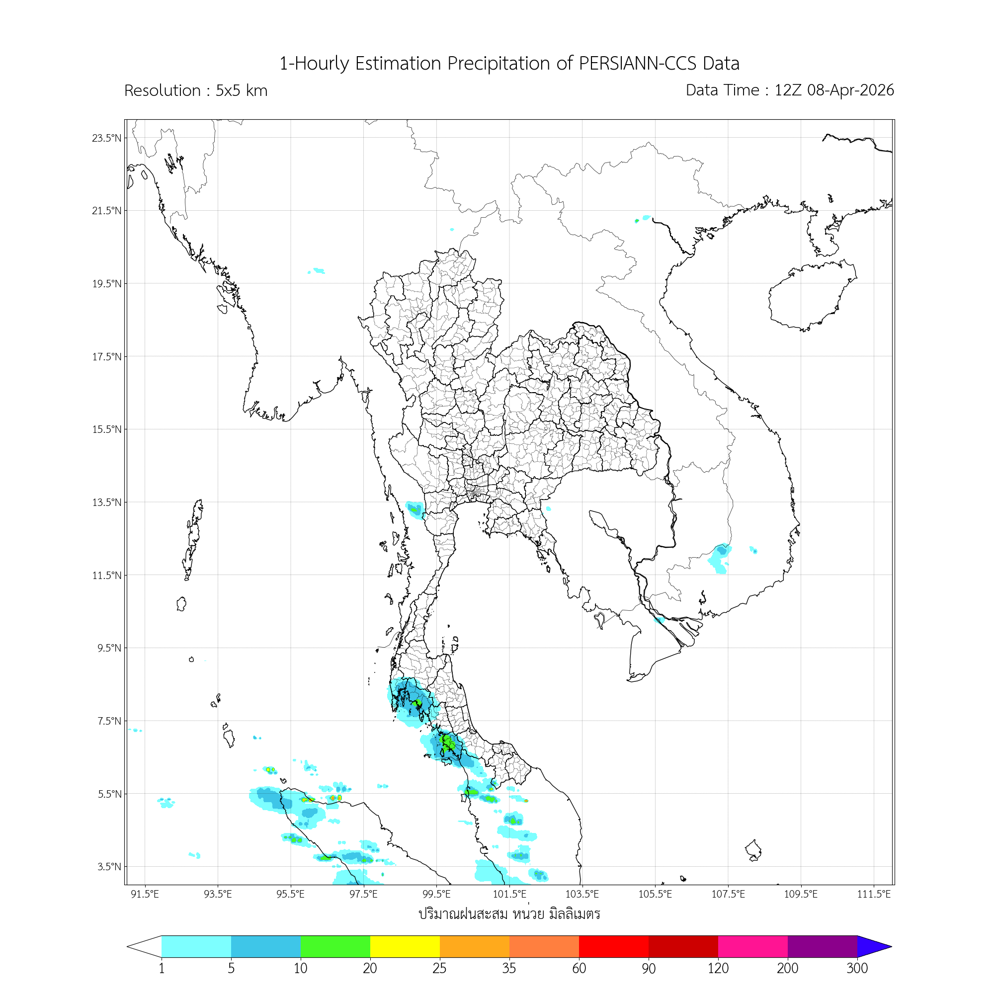 ค่าประมาณฝนสะสม 3 ชั่วโมง จากดาวเทียมอุตุนิยมวิทยา