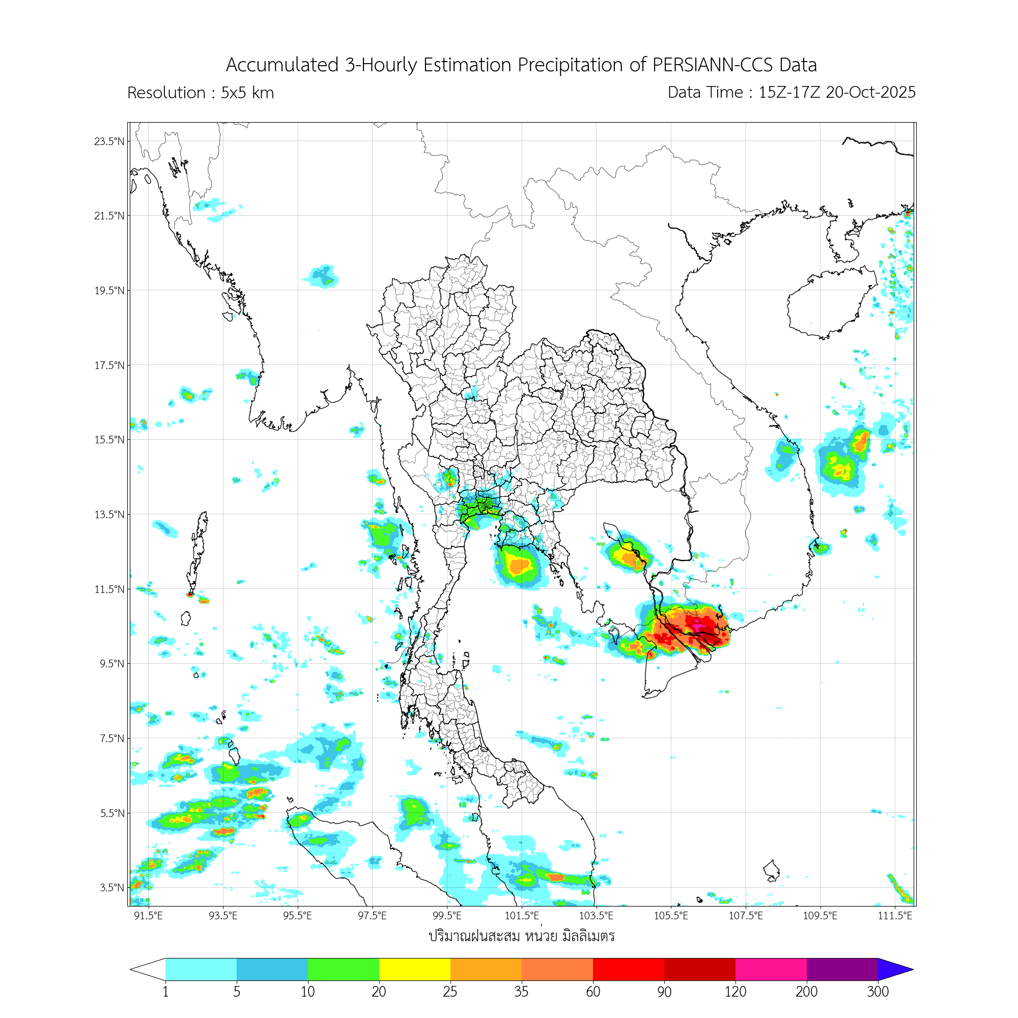 ค่าประมาณฝนสะสม 3 ชั่วโมง จากดาวเทียมอุตุนิยมวิทยา