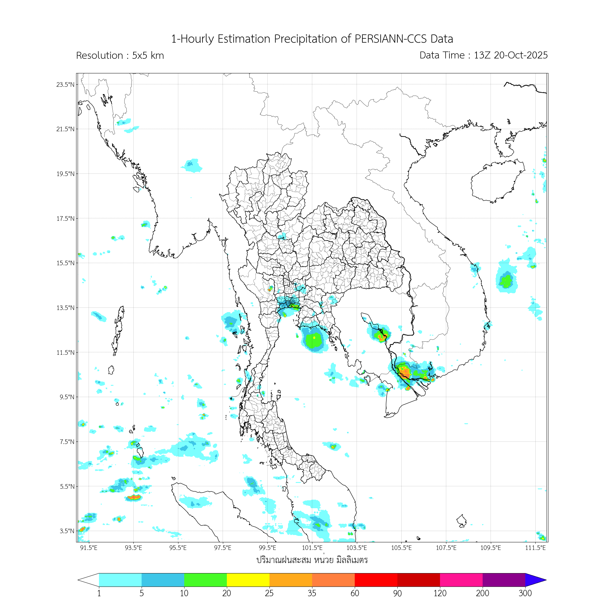 การประมาณค่าฝนจากดาวเทียม เมื่อวาน (19/10/2025)