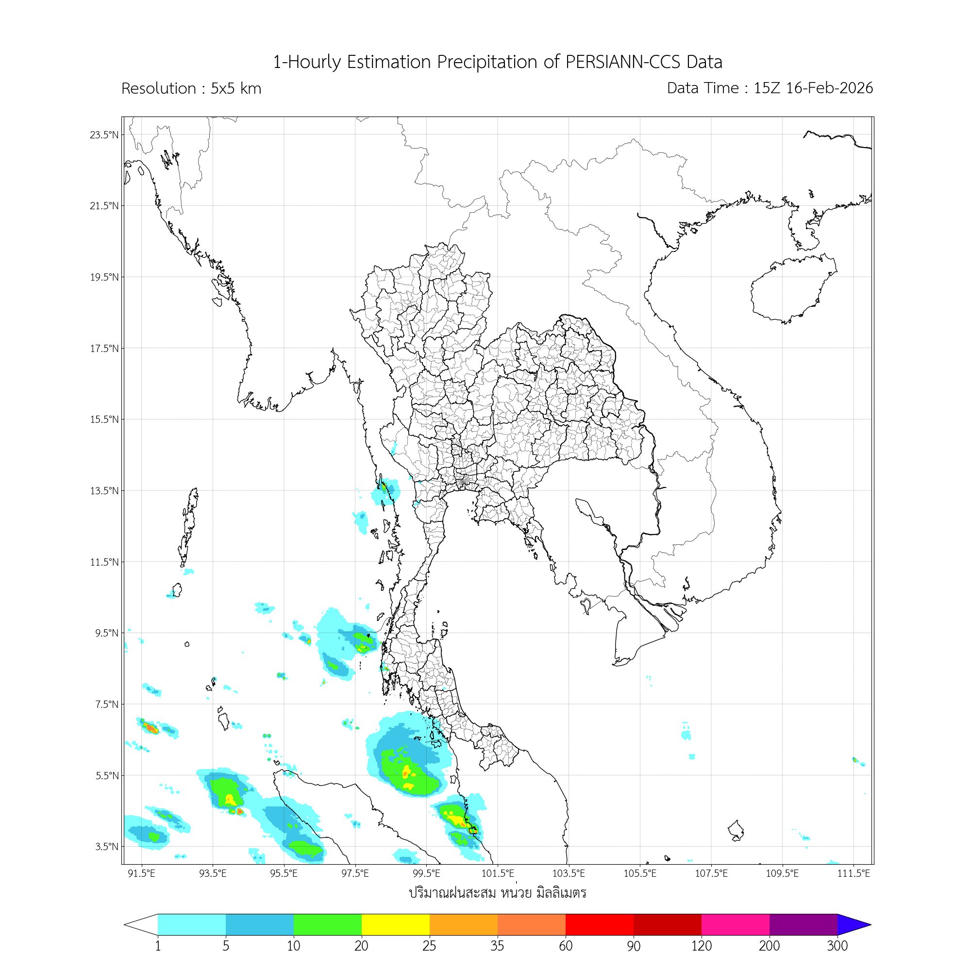 การประมาณค่าฝนจากดาวเทียม เมื่อวาน (16/02/2026)