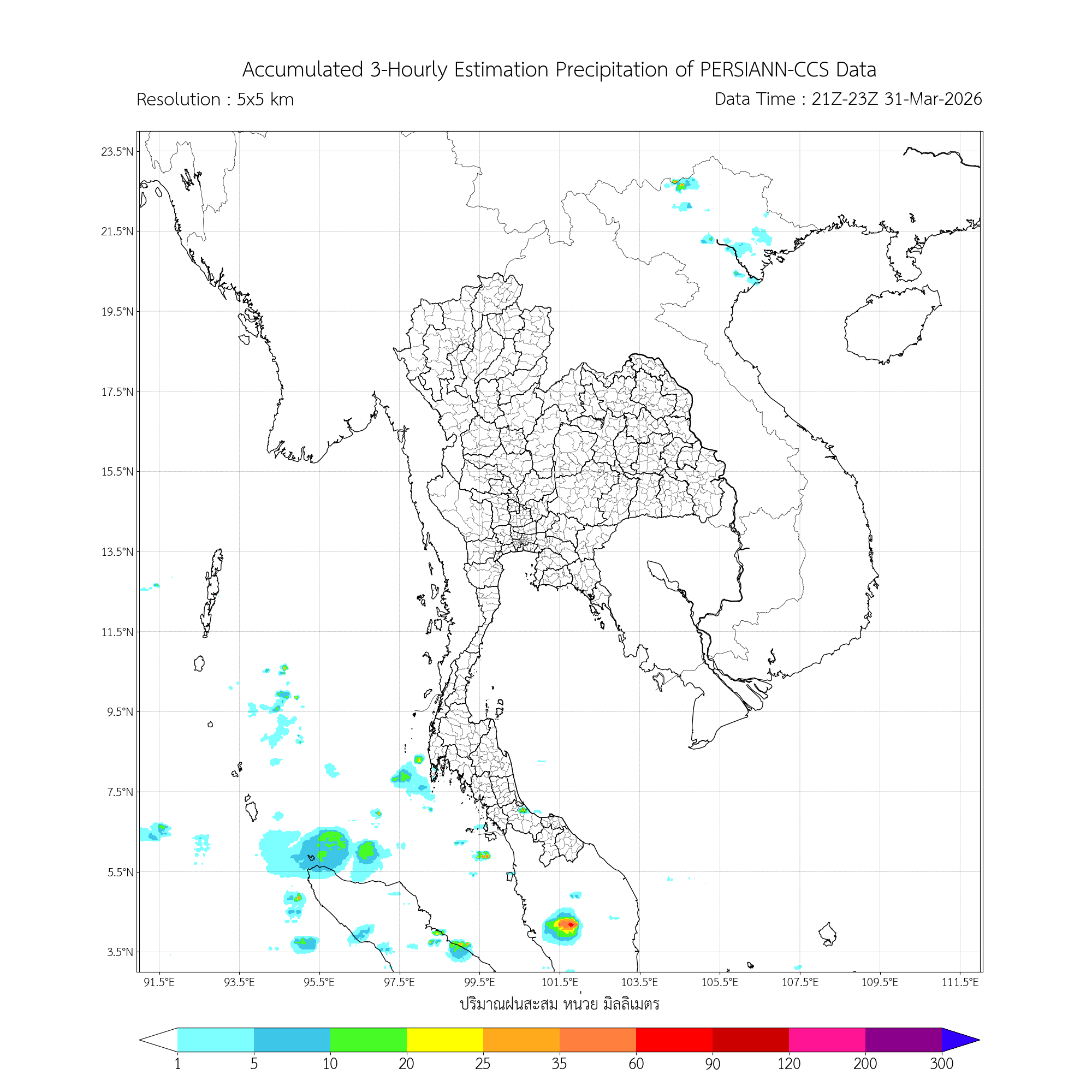 การประมาณค่าฝนจากดาวเทียม เมื่อวาน (31/03/2026)