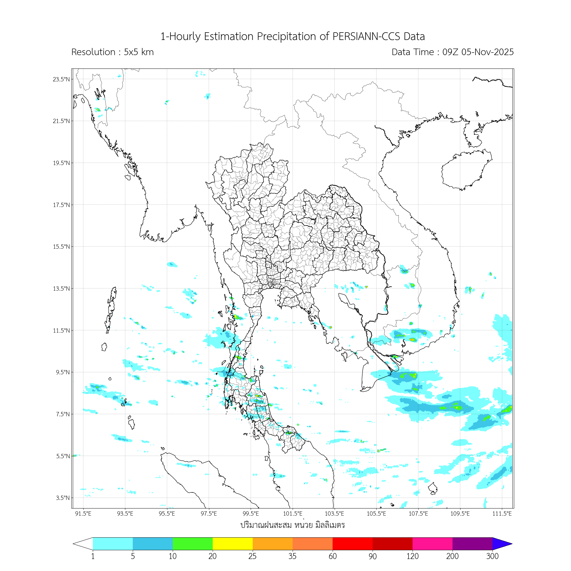 การประมาณค่าฝนจากดาวเทียม เมื่อวาน (04/11/2025)