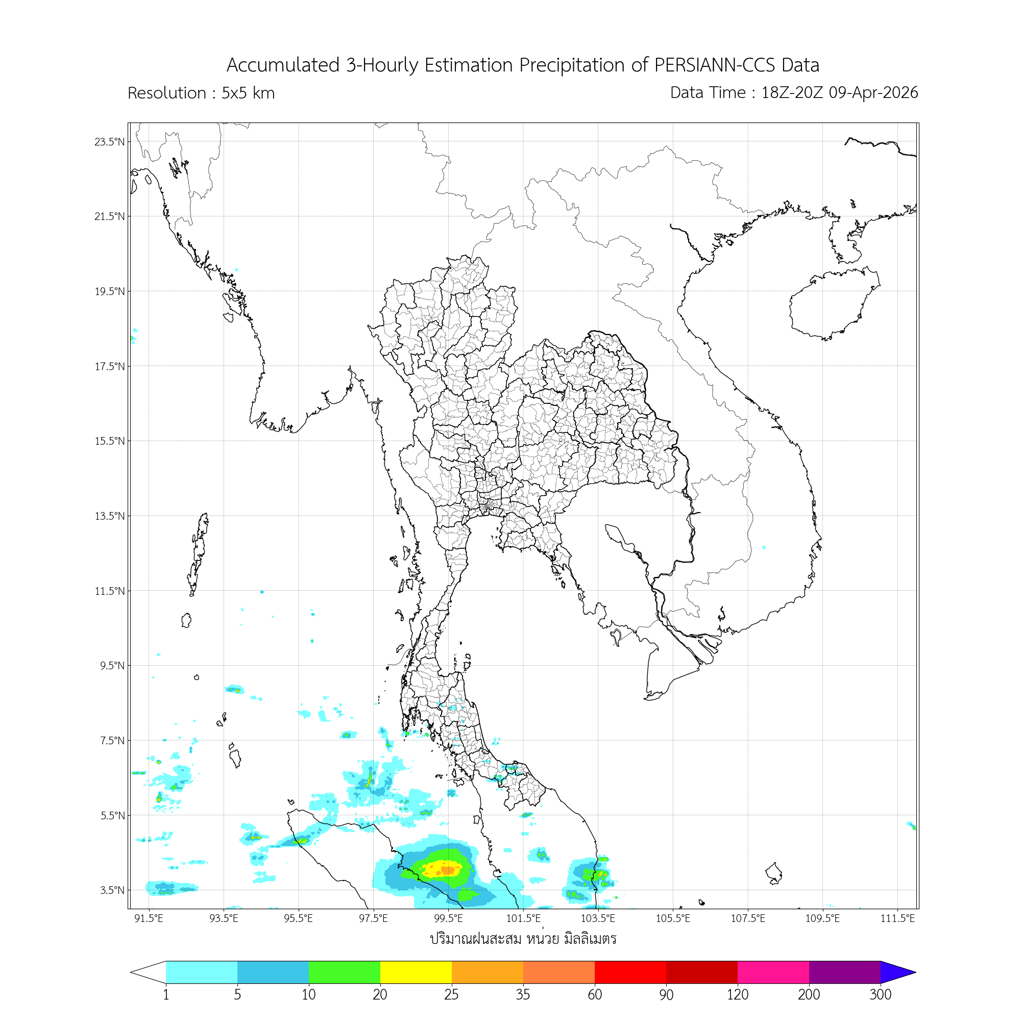 ค่าประมาณฝนสะสม 3 ชั่วโมง จากดาวเทียมอุตุนิยมวิทยา