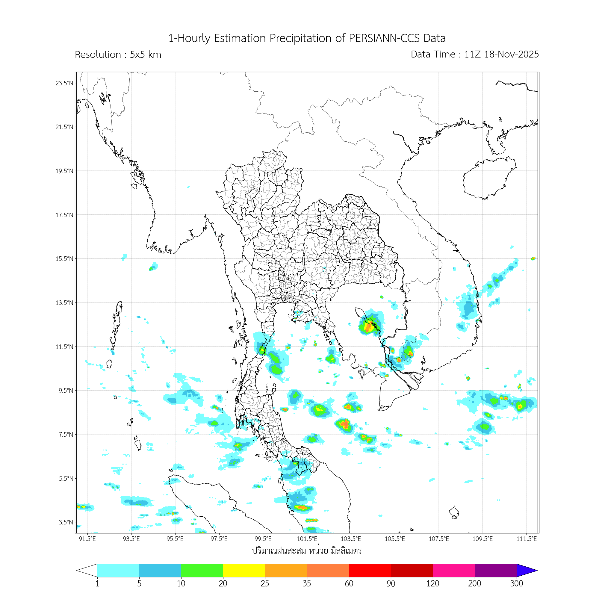 การประมาณค่าฝนจากดาวเทียม เมื่อวาน (17/11/2025)