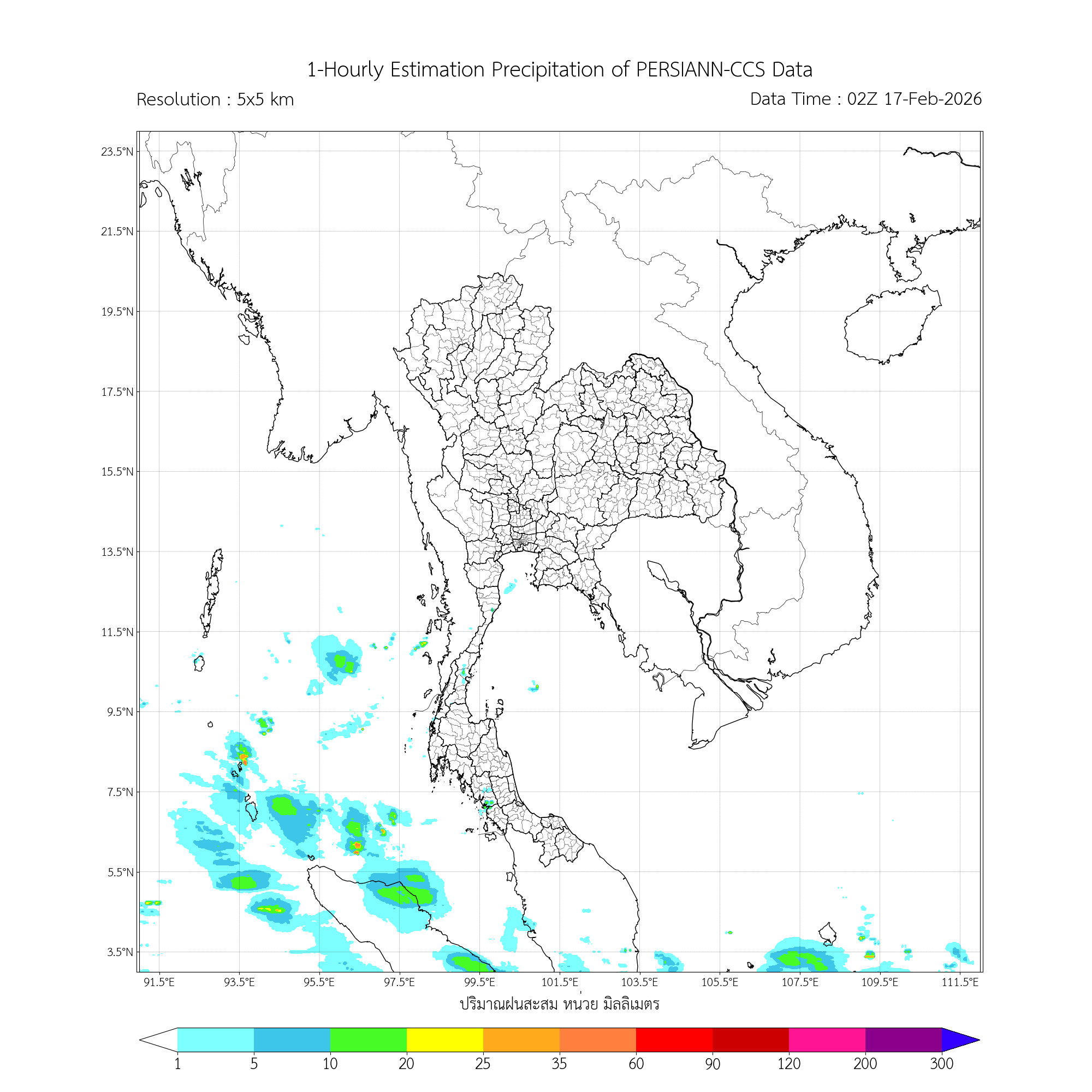 การประมาณค่าฝนจากดาวเทียม เมื่อวาน (16/02/2026)