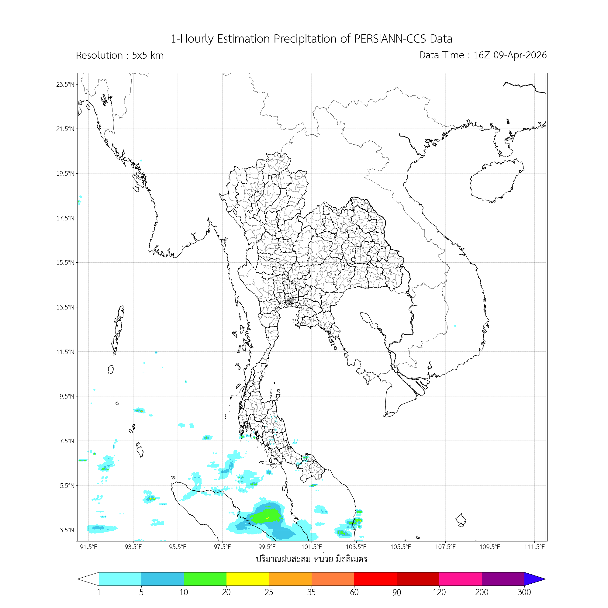 การประมาณค่าฝนจากดาวเทียม เมื่อวาน (09/04/2026)