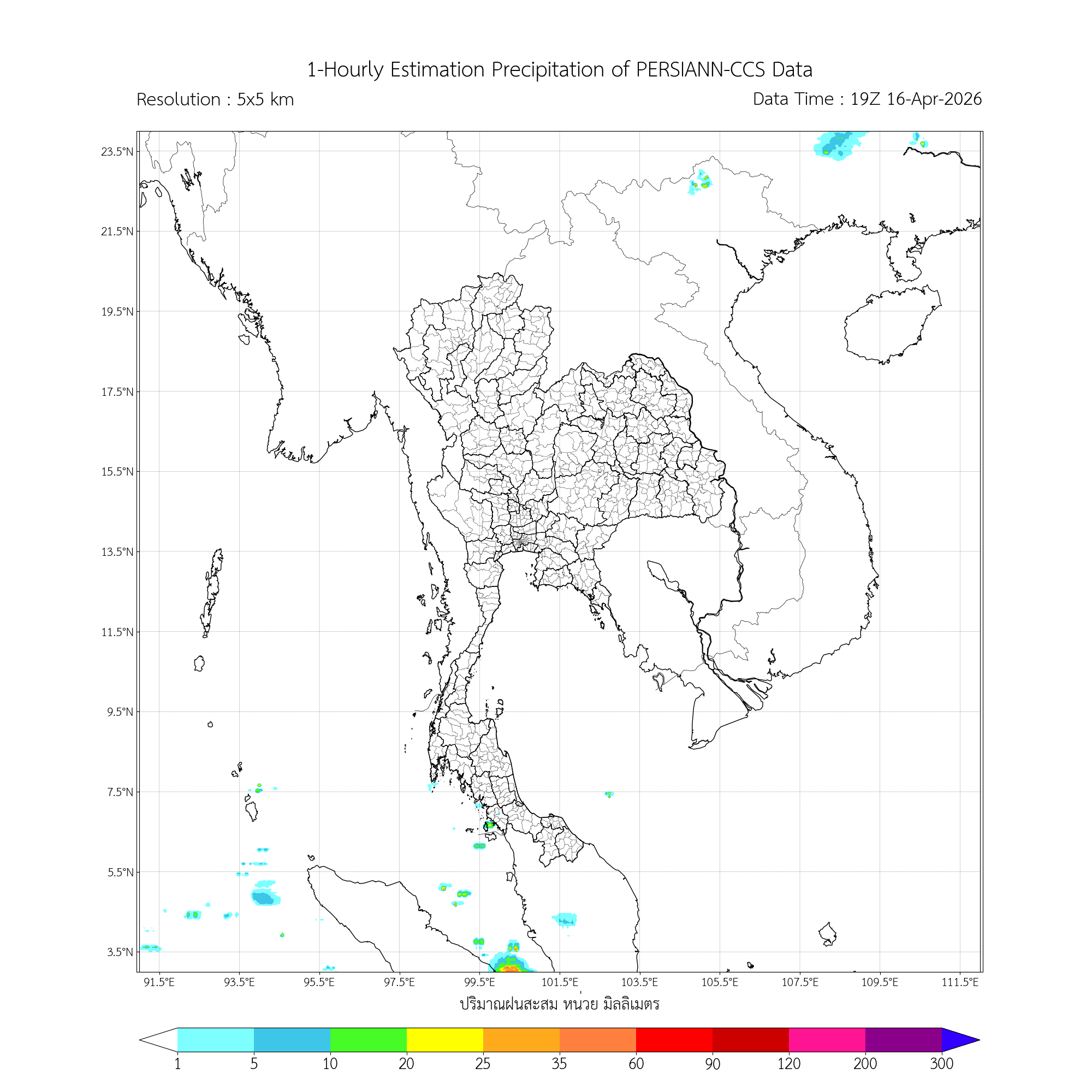 การประมาณค่าฝนจากดาวเทียม เมื่อวาน (16/04/2026)