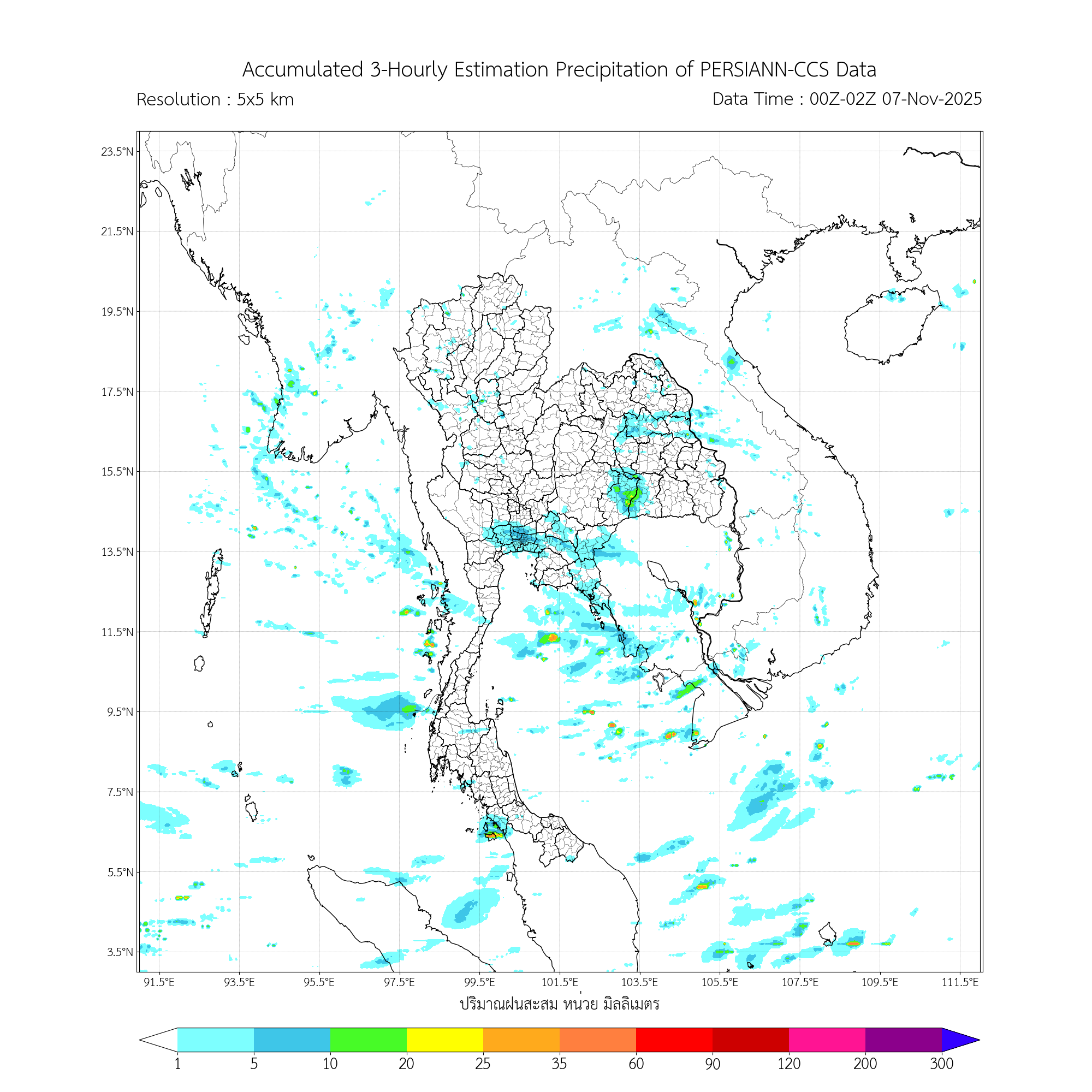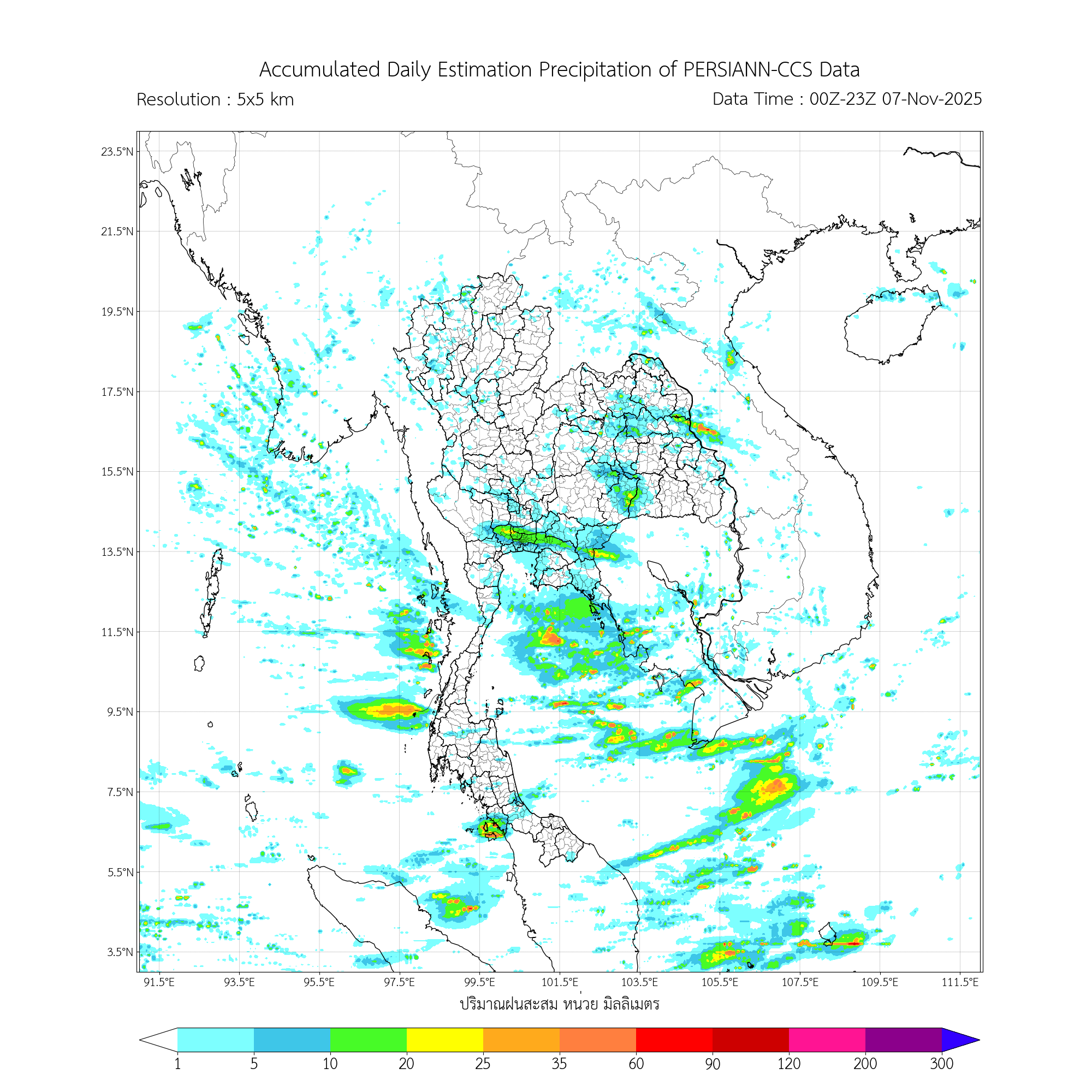 การประมาณค่าฝนจากดาวเทียม เมื่อวาน (06/11/2025)
