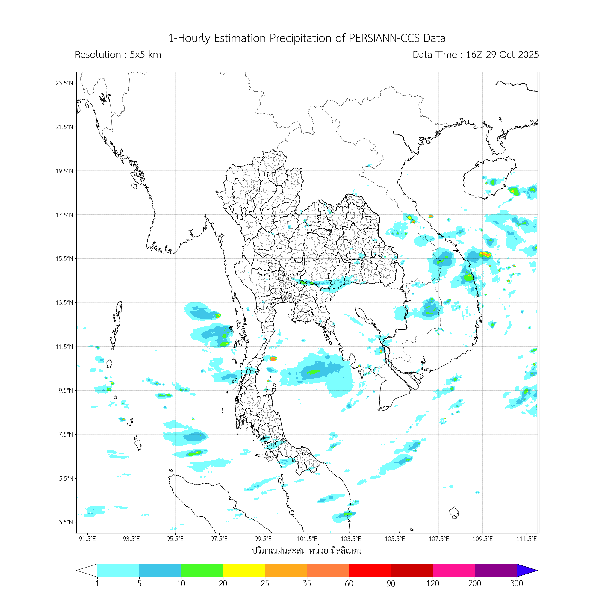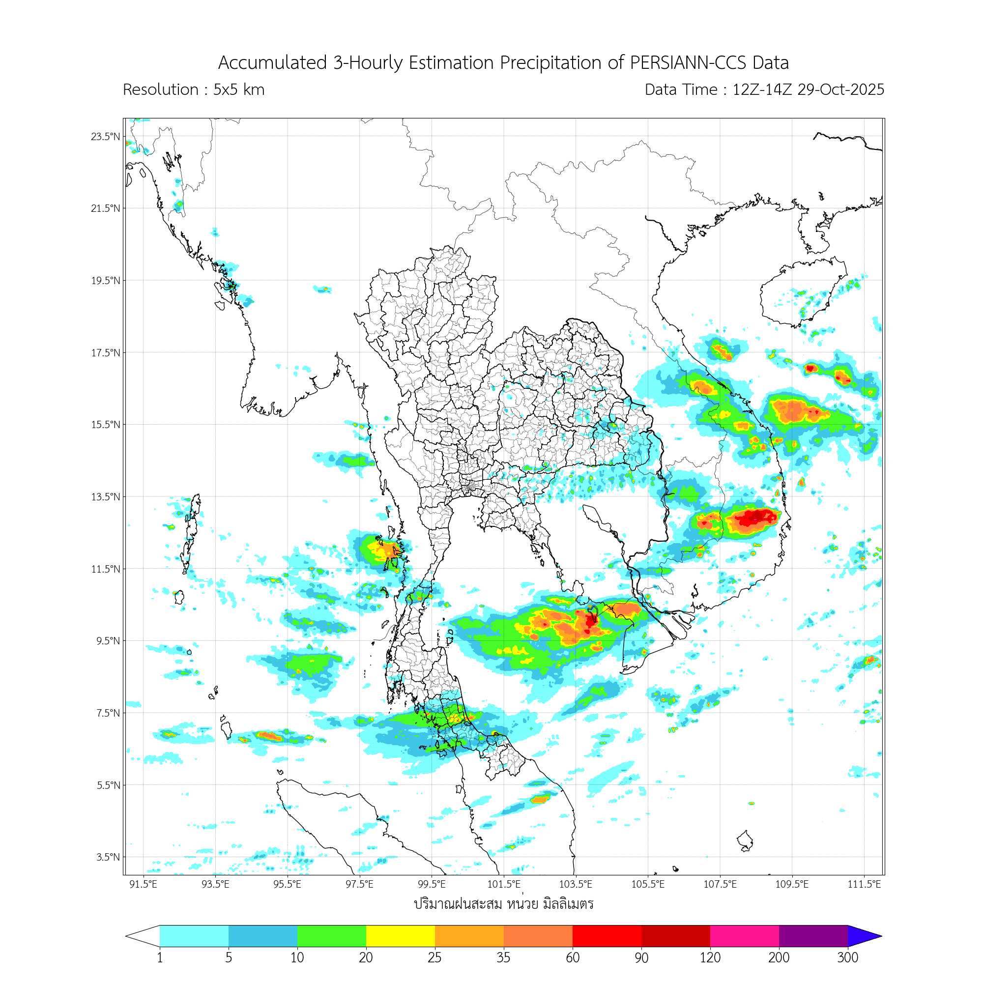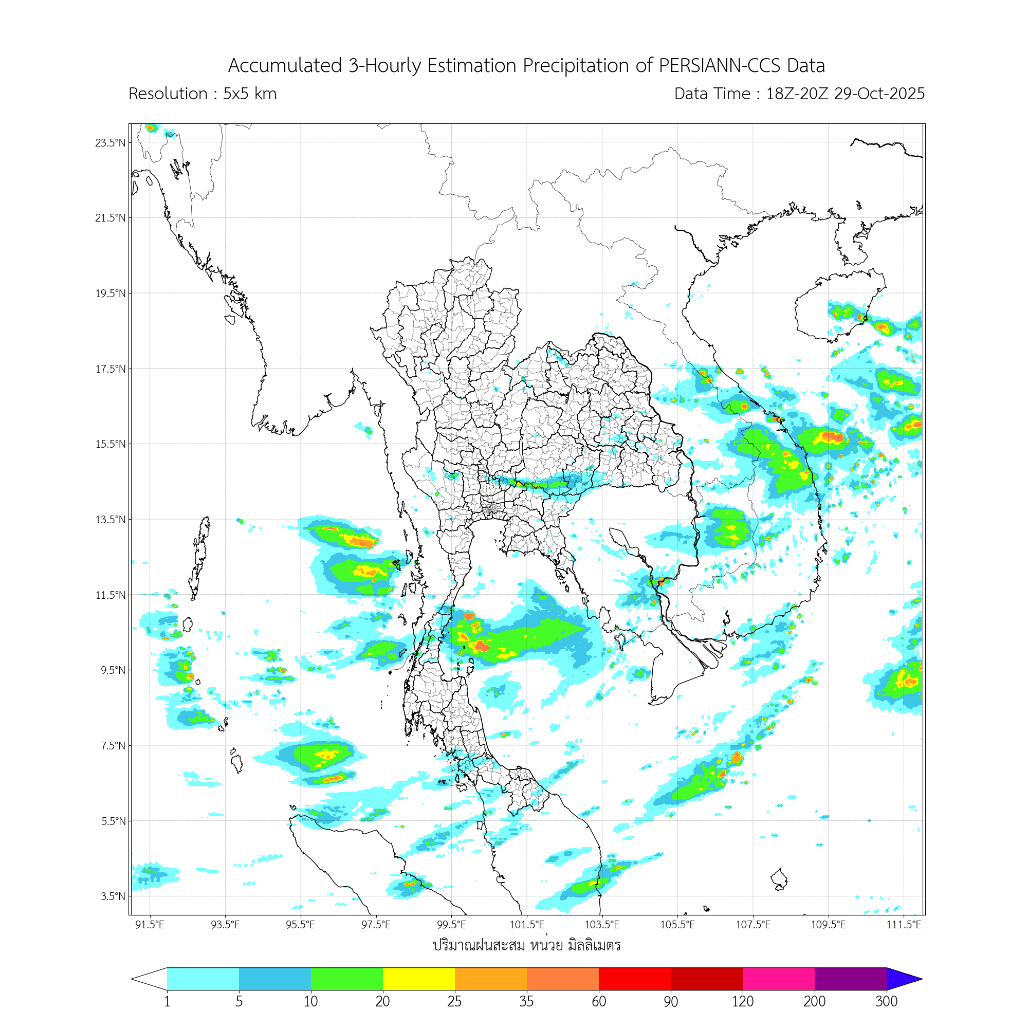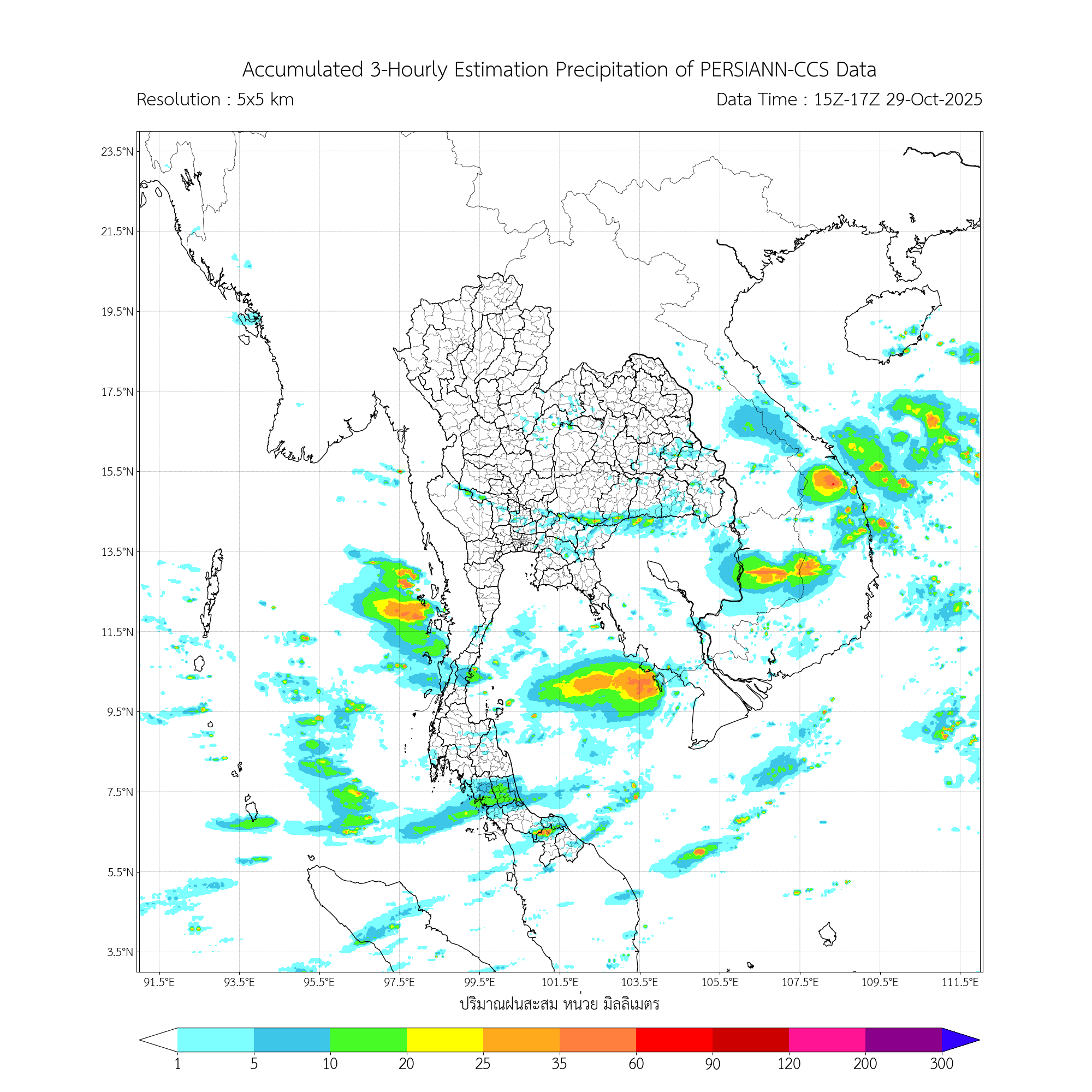 การประมาณค่าฝนจากดาวเทียม เมื่อวาน (29/10/2025)