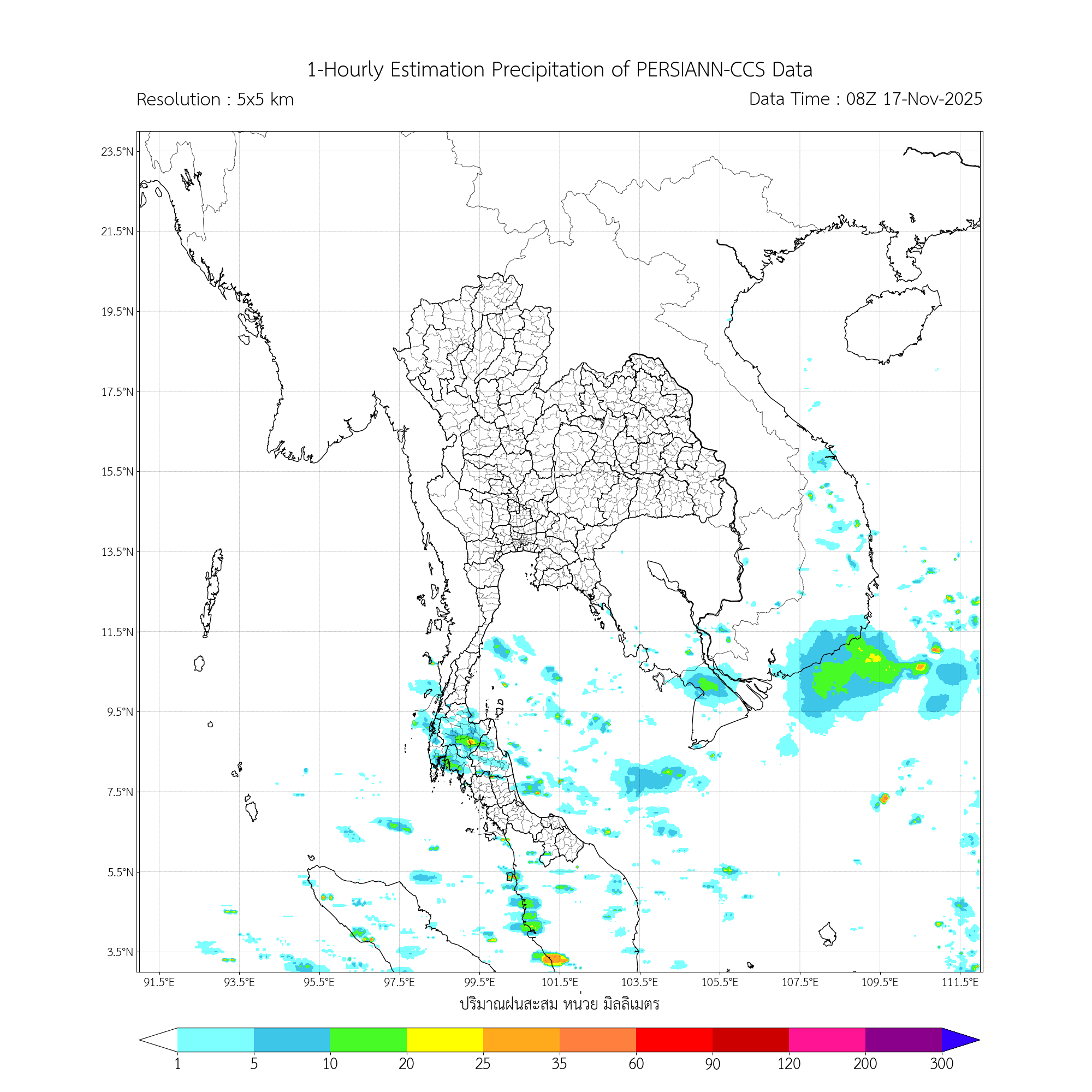 การประมาณค่าฝนจากดาวเทียม เมื่อวาน (16/11/2025)