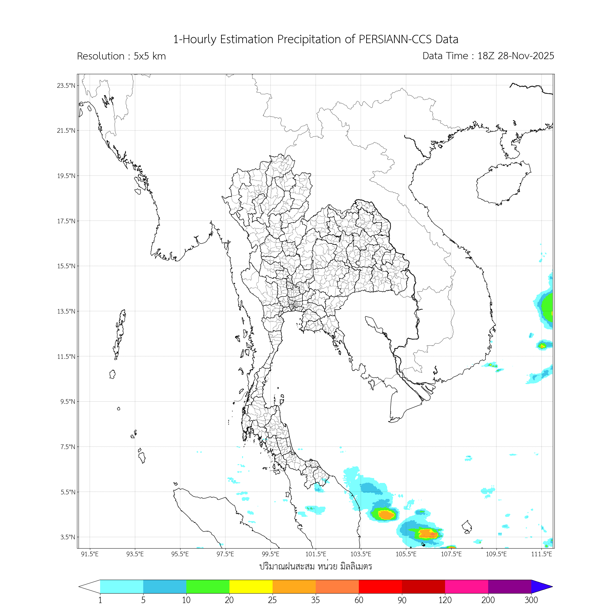 การประมาณค่าฝนจากดาวเทียม เมื่อวาน (28/11/2025)