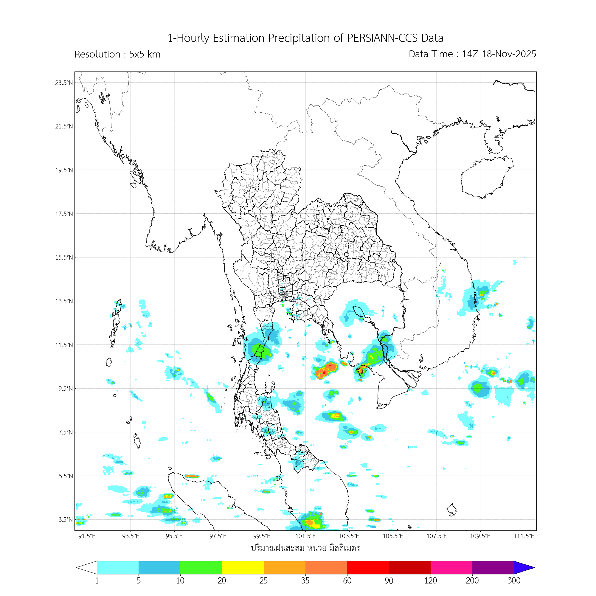 การประมาณค่าฝนจากดาวเทียม เมื่อวาน (17/11/2025)