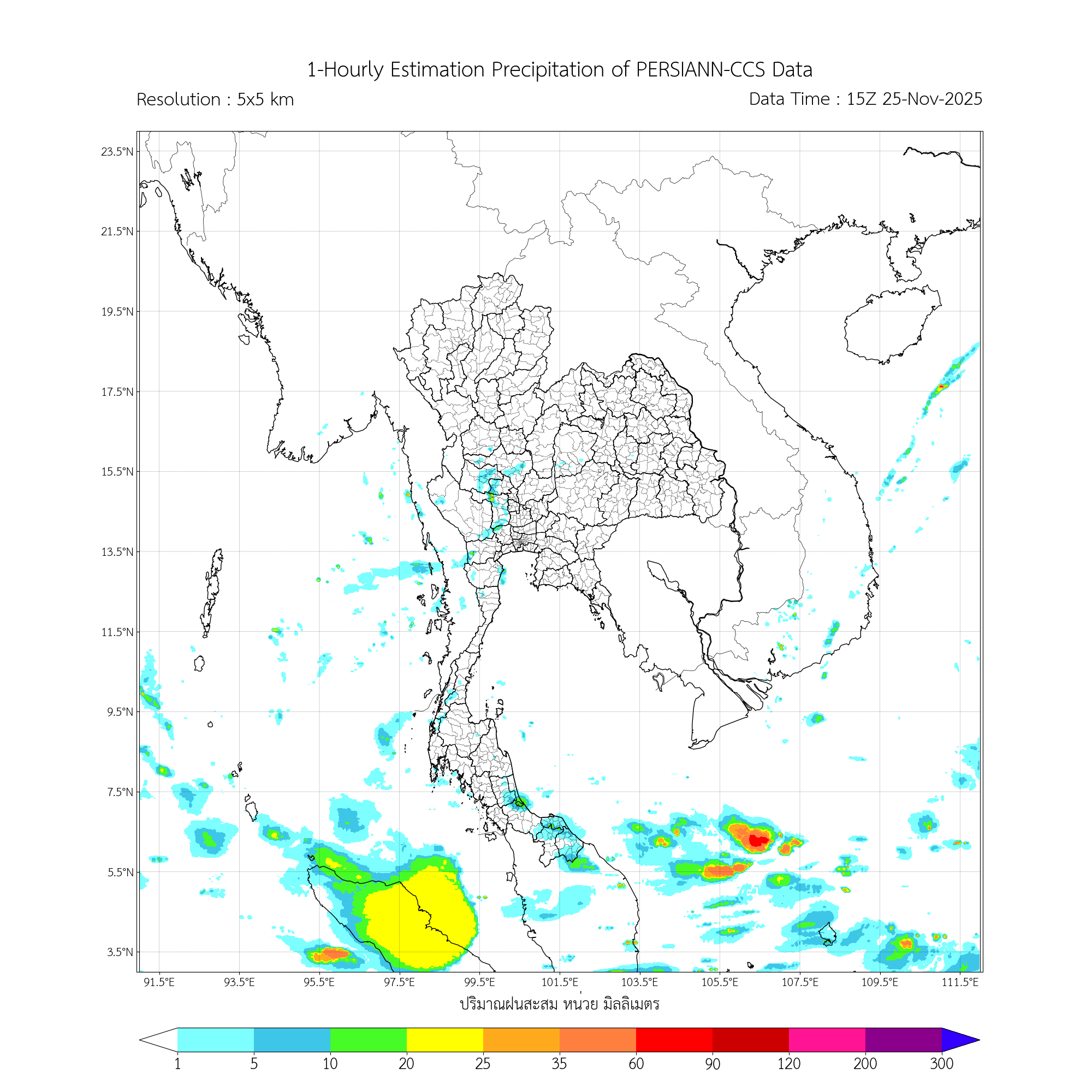 การประมาณค่าฝนจากดาวเทียม เมื่อวาน (25/11/2025)