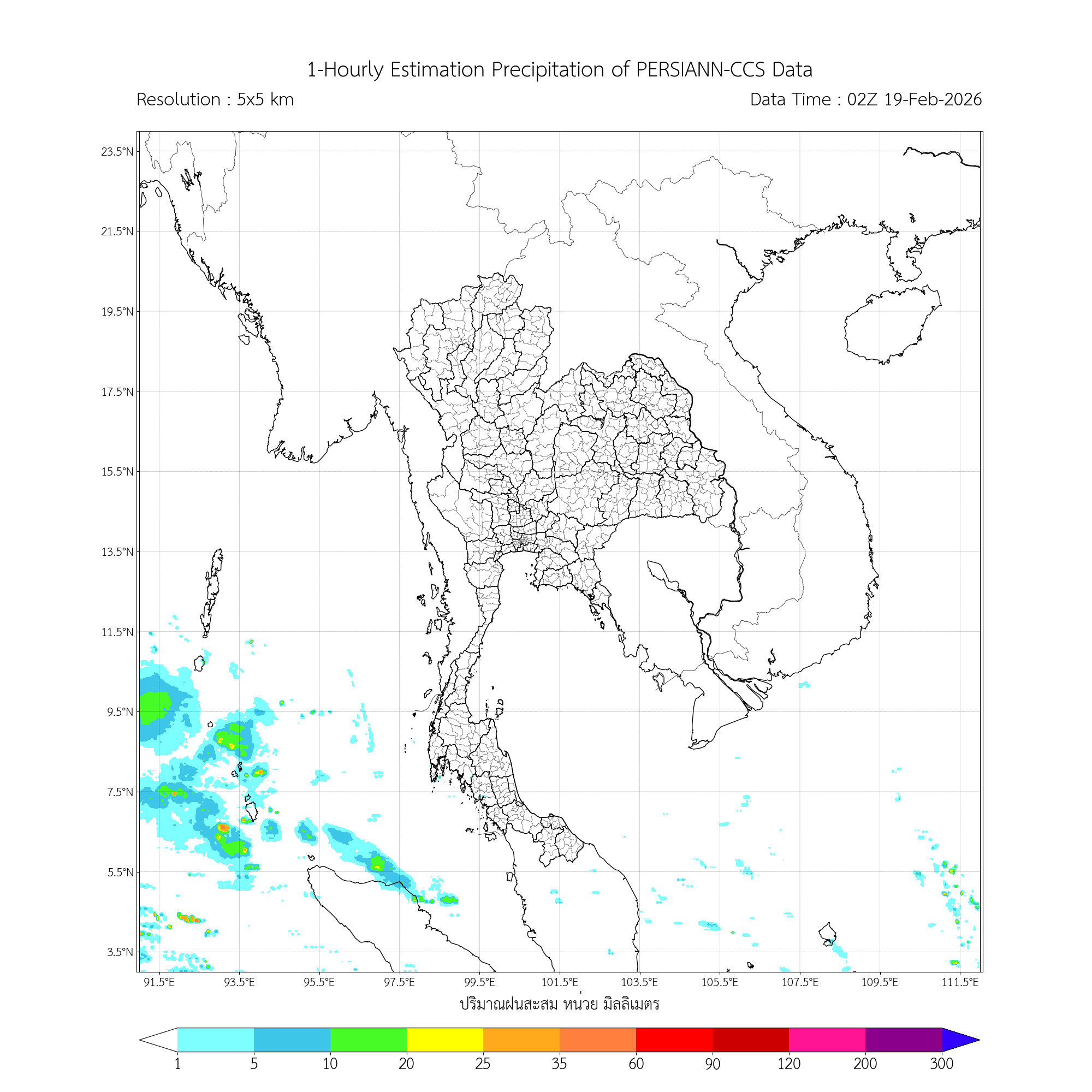 การประมาณค่าฝนจากดาวเทียม เมื่อวาน (18/02/2026)