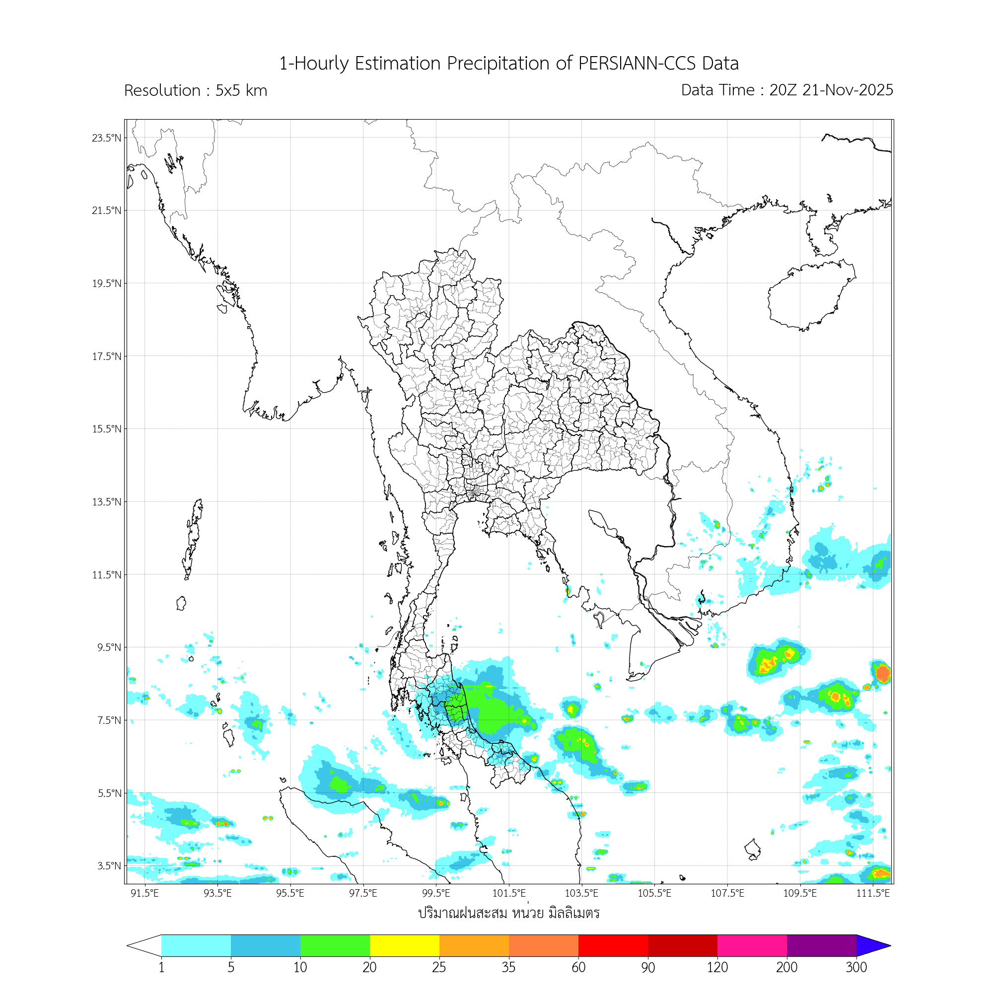 การประมาณค่าฝนจากดาวเทียม เมื่อวาน (21/11/2025)