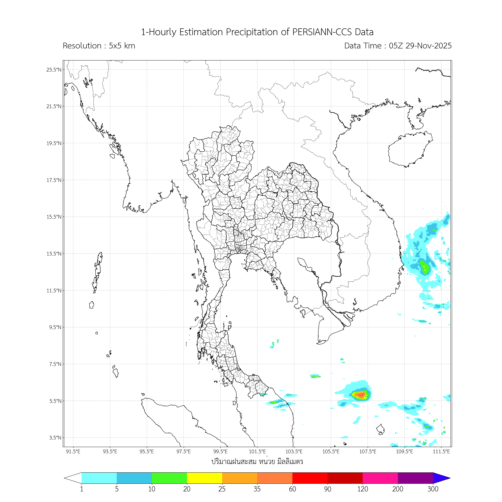 การประมาณค่าฝนจากดาวเทียม เมื่อวาน (28/11/2025)
