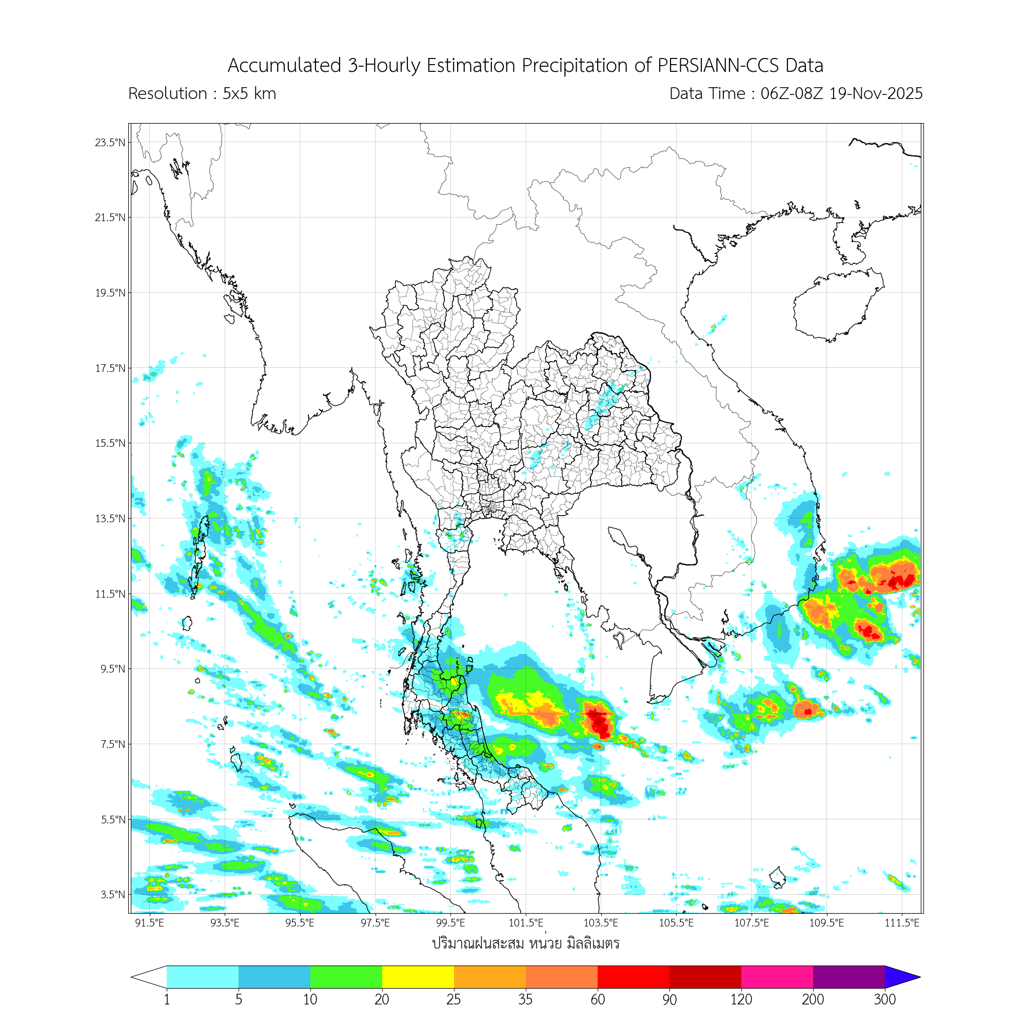 การประมาณค่าฝนจากดาวเทียม เมื่อวาน (18/11/2025)