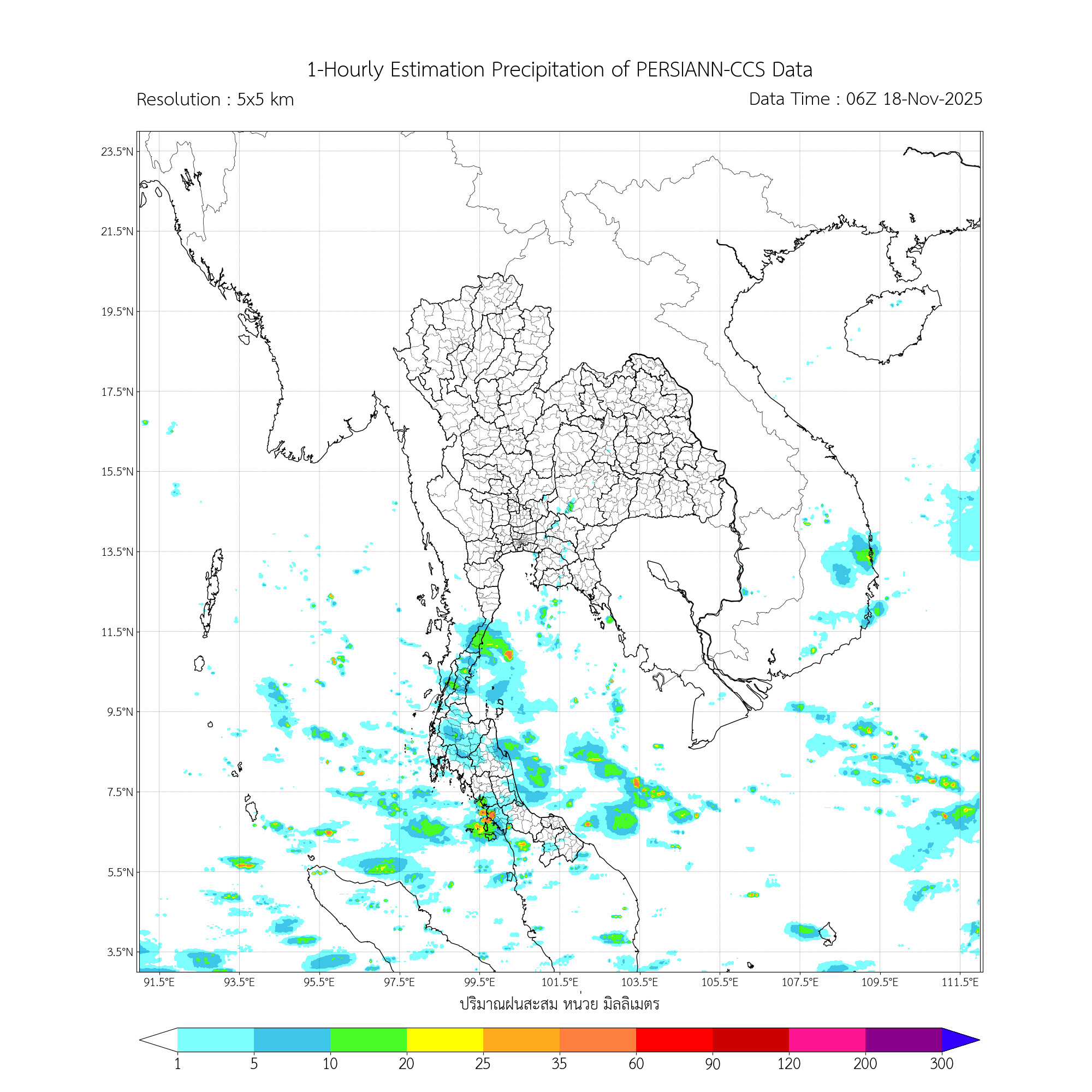 การประมาณค่าฝนจากดาวเทียม เมื่อวาน (17/11/2025)
