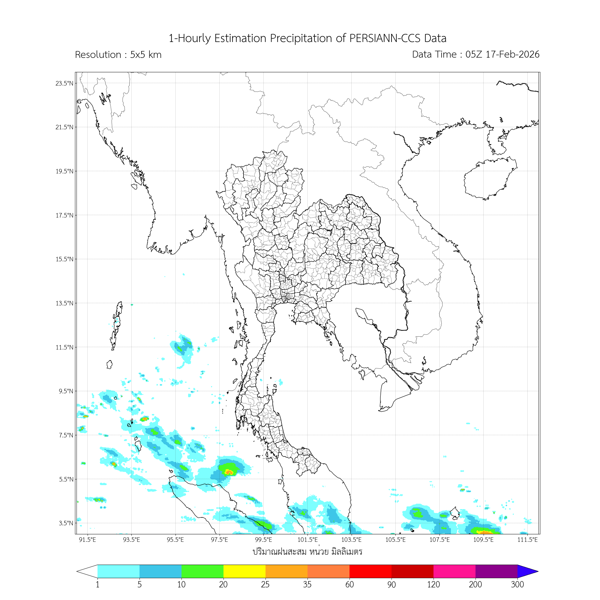 การประมาณค่าฝนจากดาวเทียม เมื่อวาน (16/02/2026)