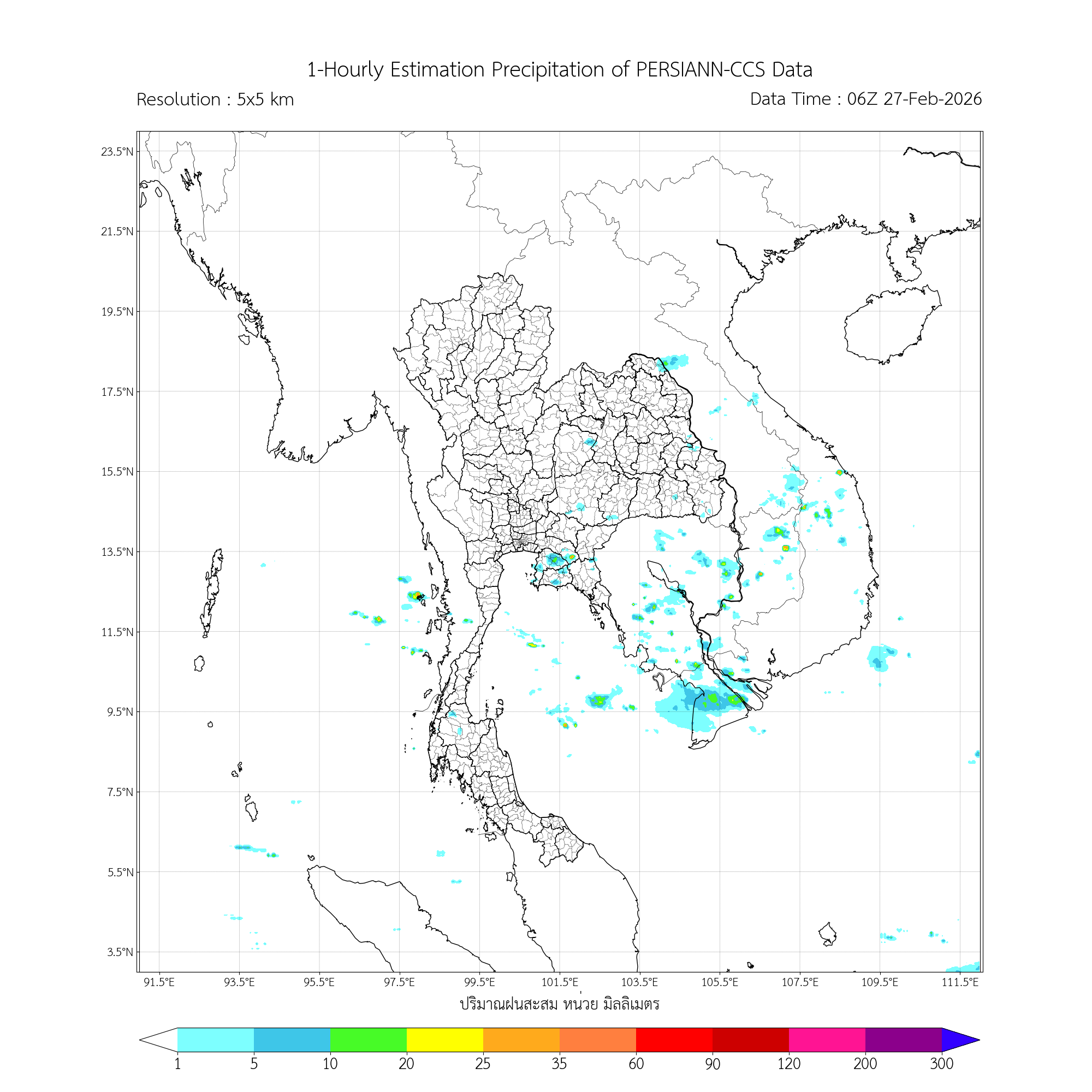 การประมาณค่าฝนจากดาวเทียม เมื่อวาน (26/02/2026)