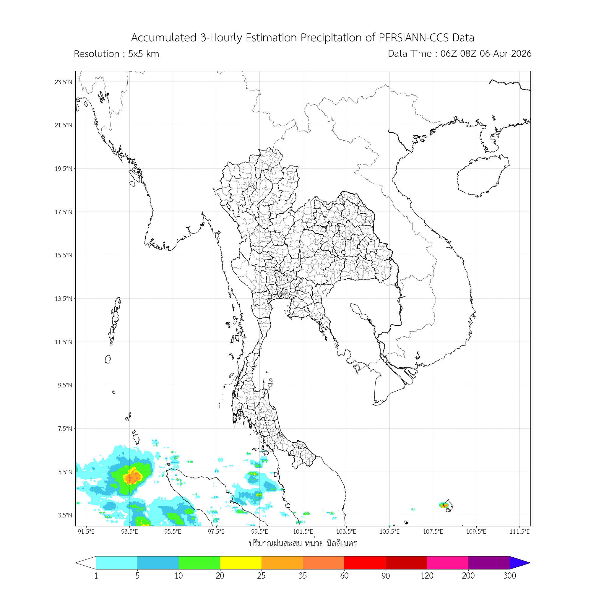 ค่าประมาณฝนสะสม 3 ชั่วโมง จากดาวเทียมอุตุนิยมวิทยา