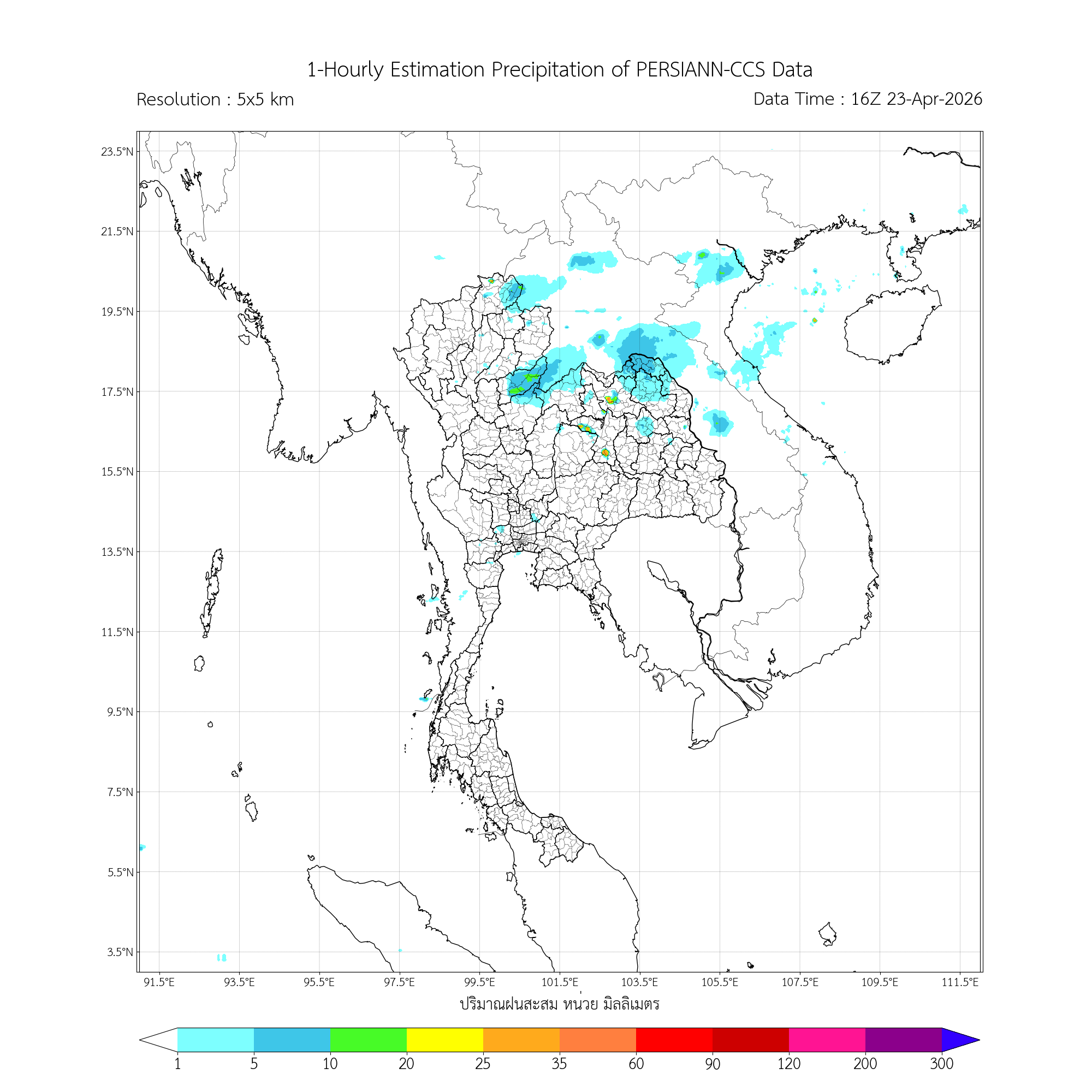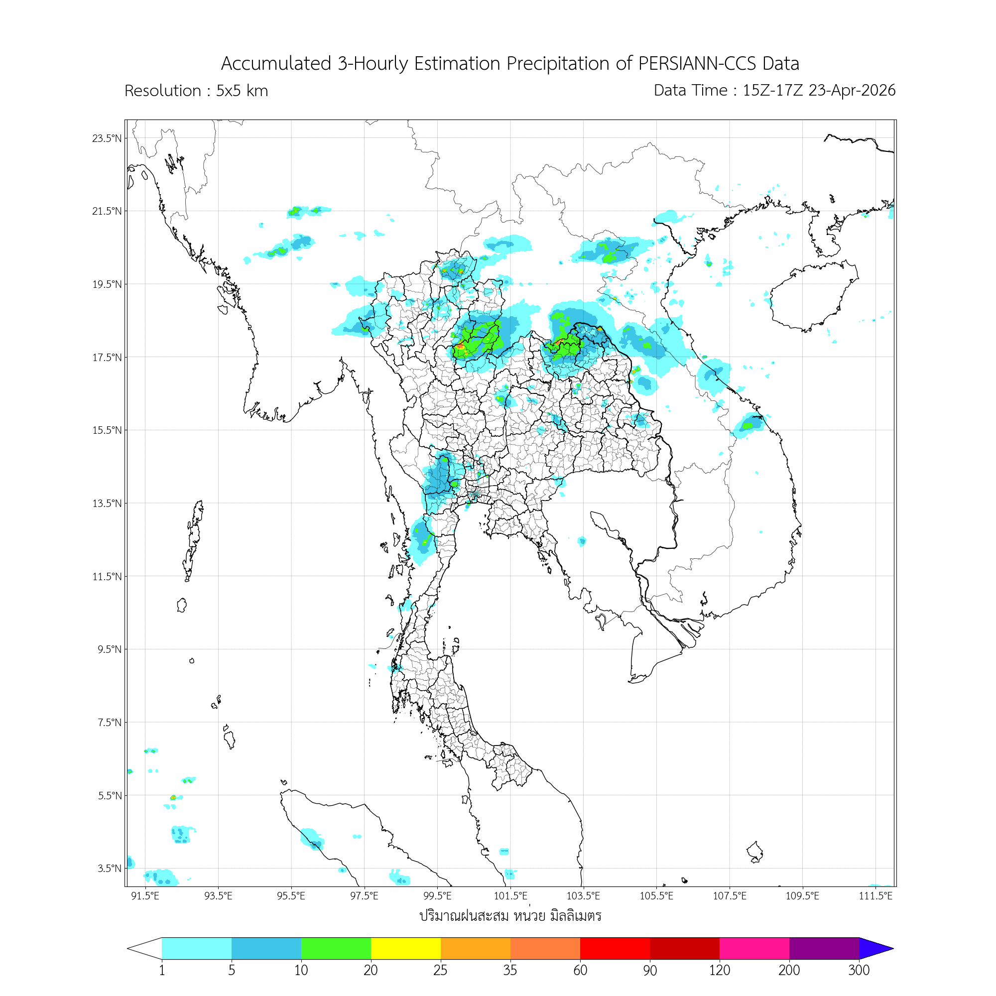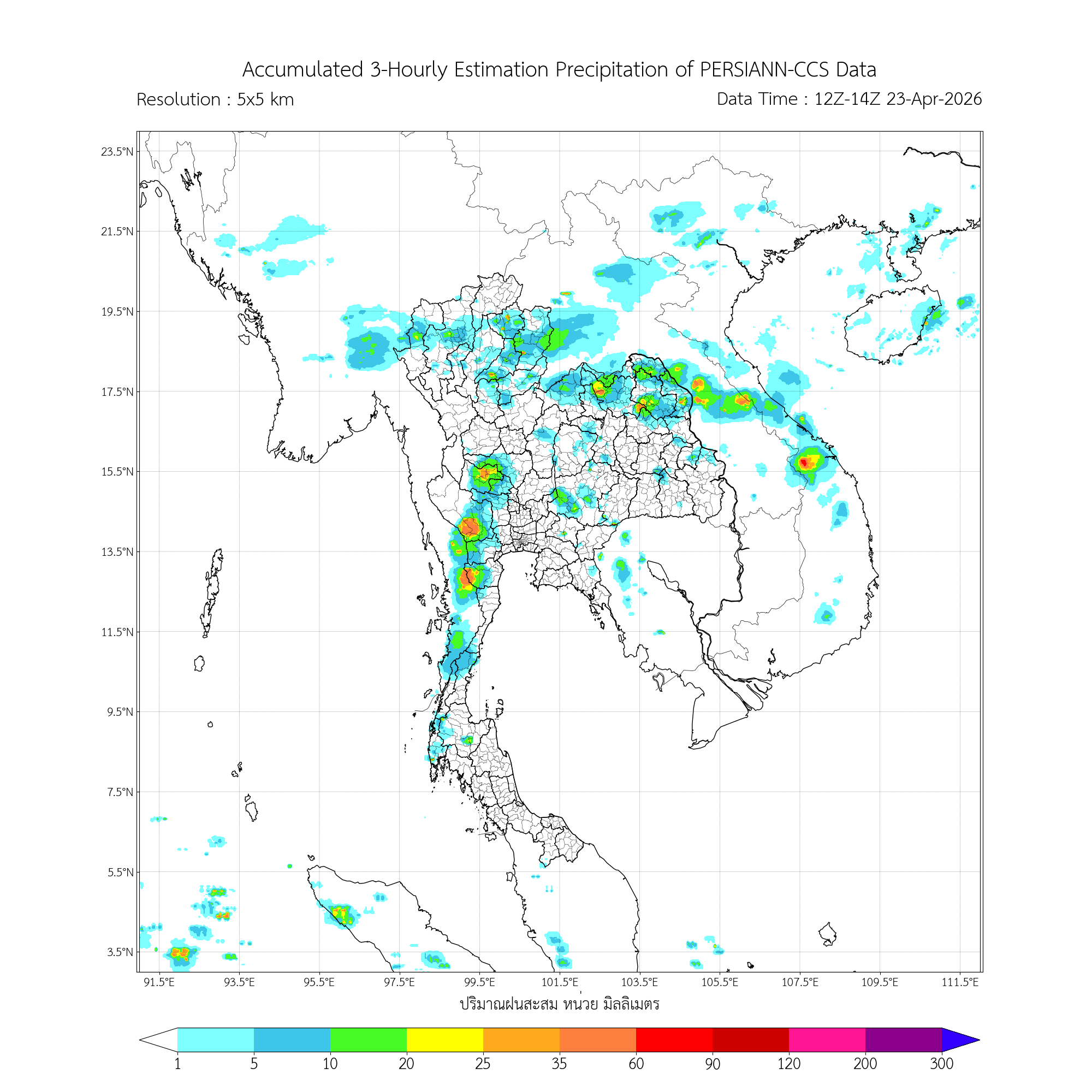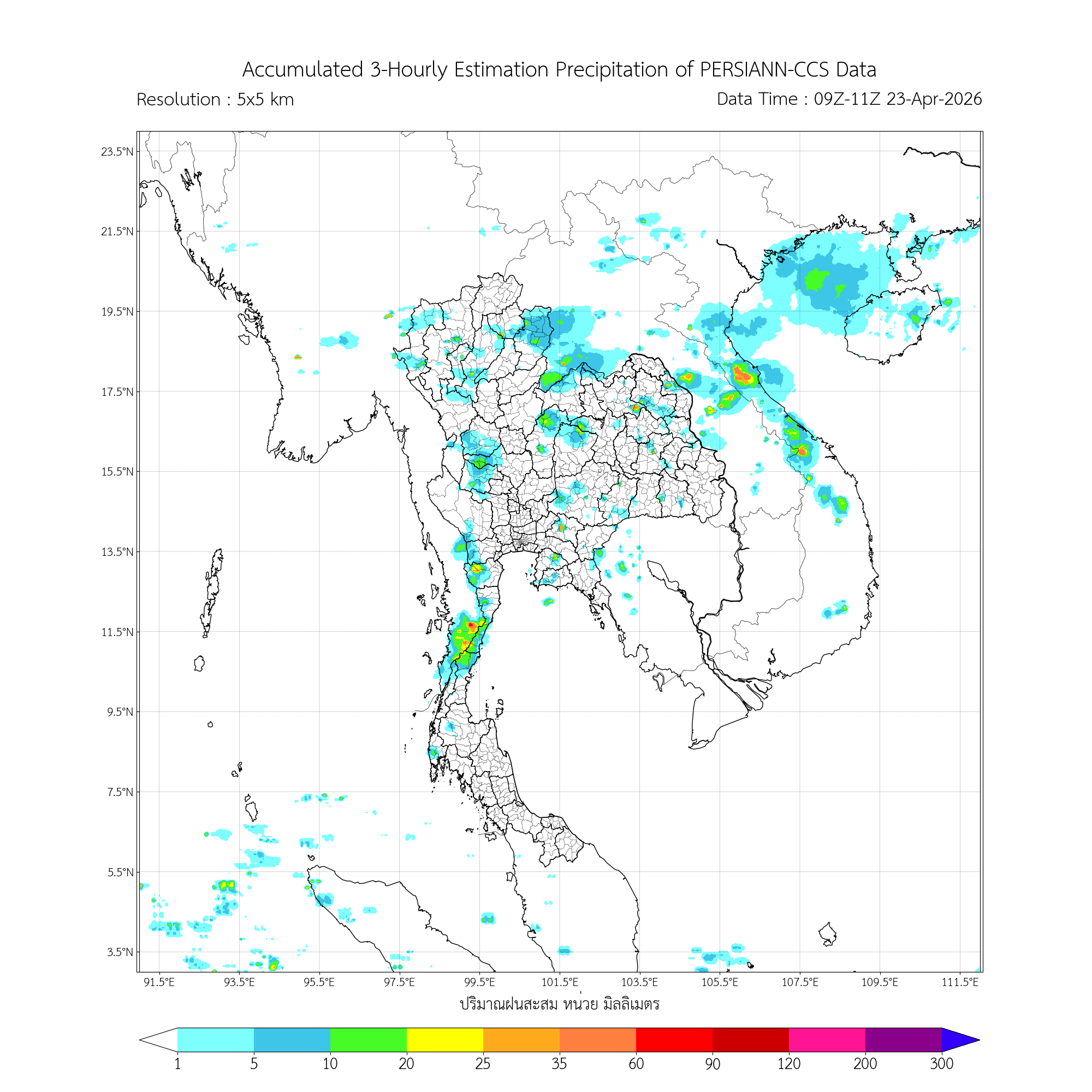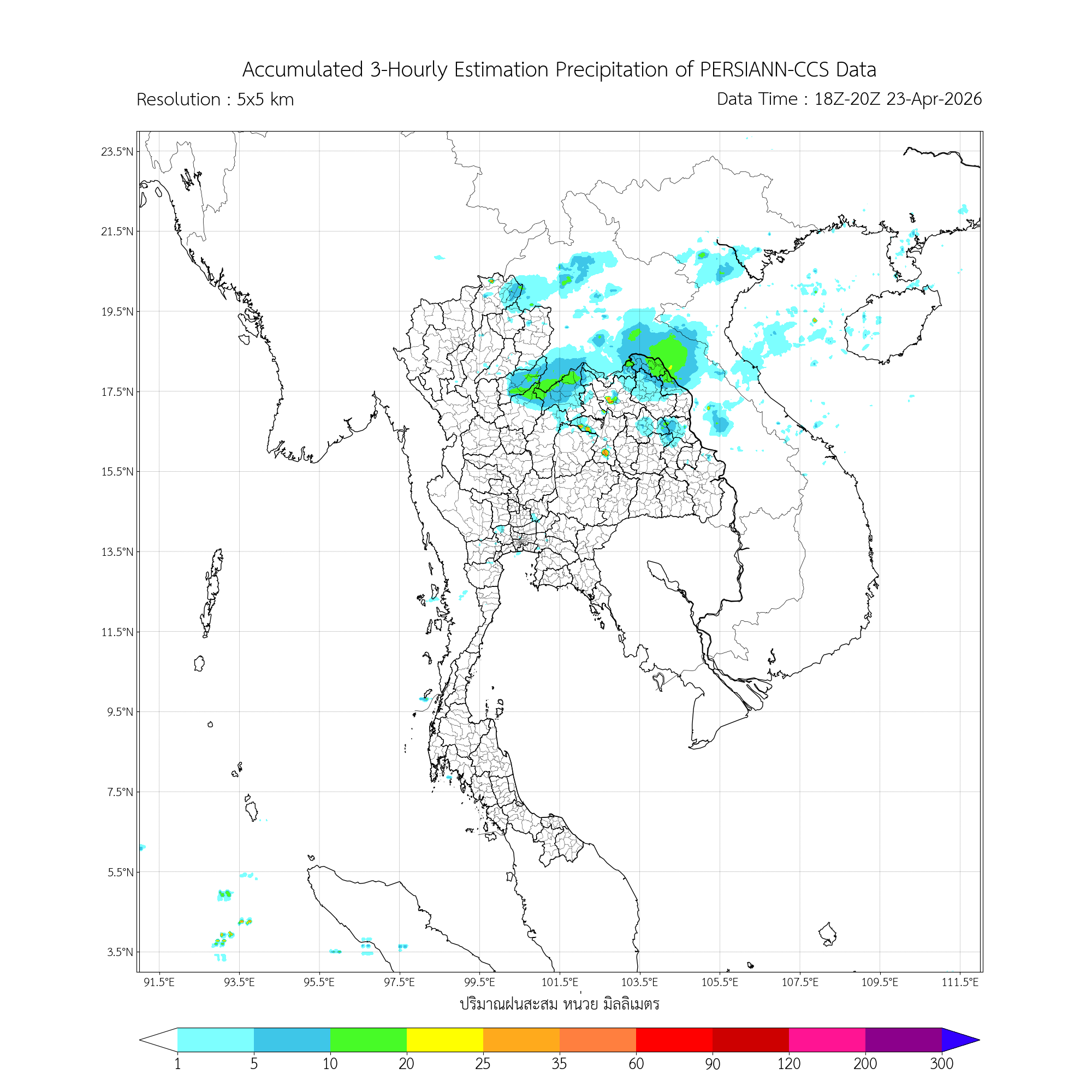 การประมาณค่าฝนจากดาวเทียม เมื่อวาน (23/04/2026)