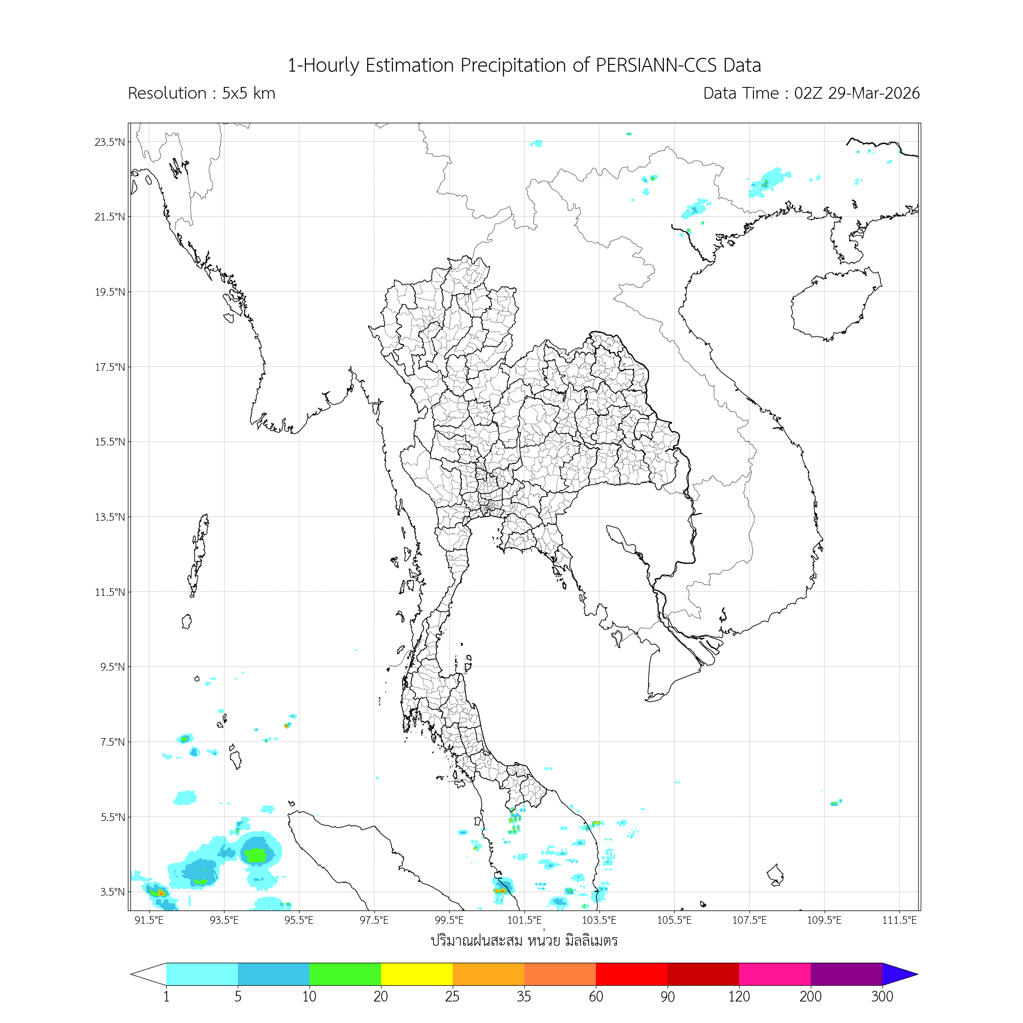 ค่าประมาณฝนสะสม 3 ชั่วโมง จากดาวเทียมอุตุนิยมวิทยา