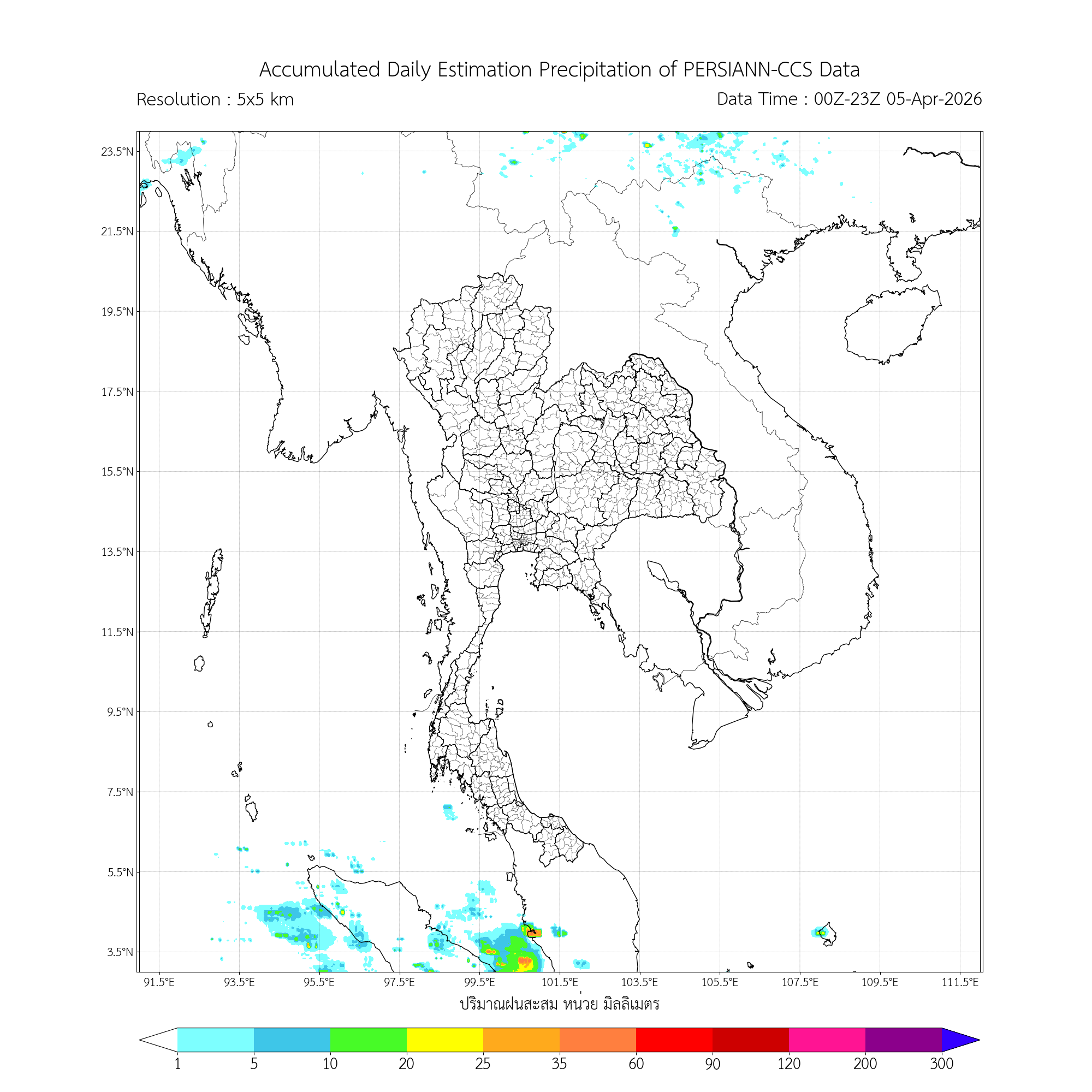 การประมาณค่าฝนจากดาวเทียม เมื่อวาน (04/04/2026)