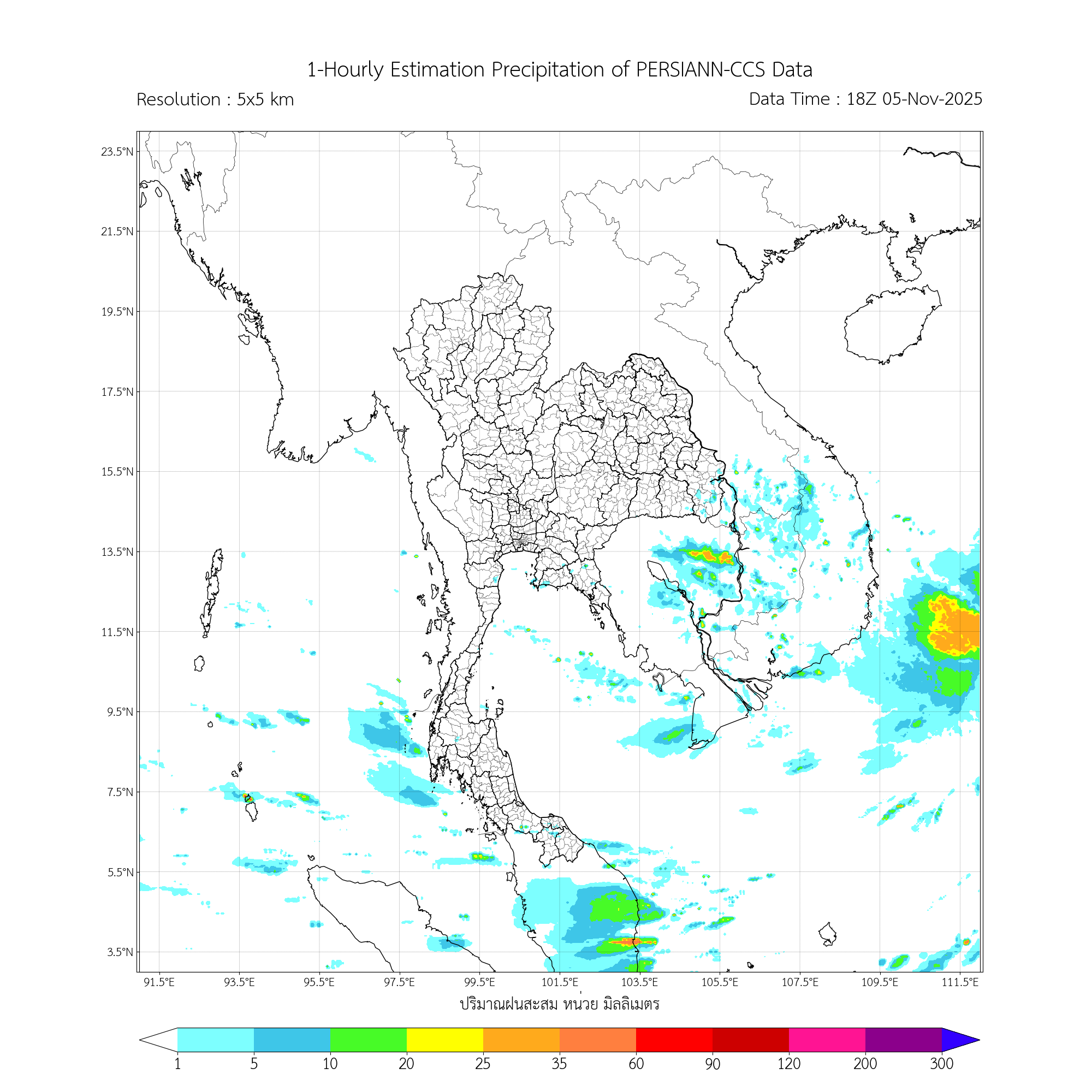 การประมาณค่าฝนจากดาวเทียม เมื่อวาน (05/11/2025)