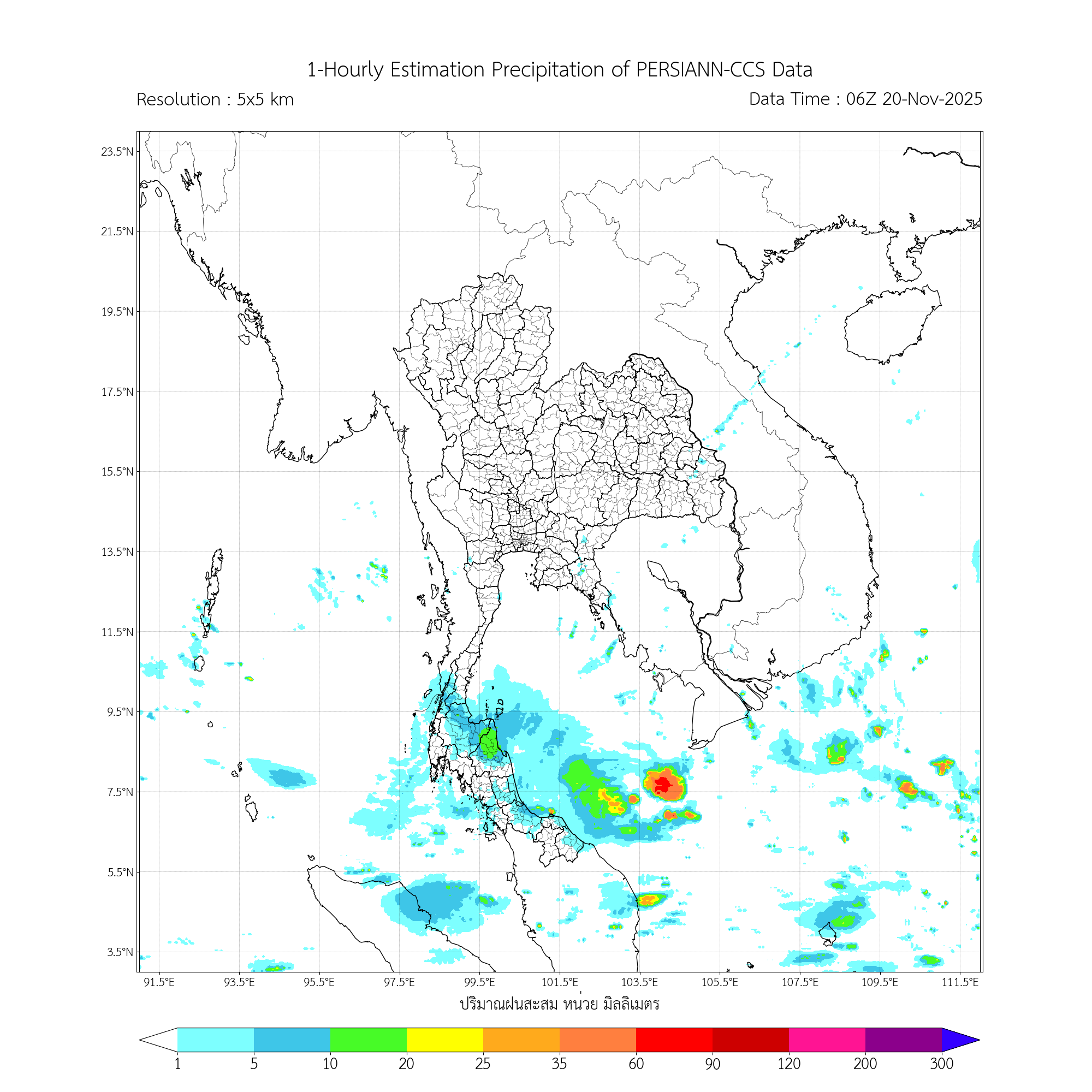 การประมาณค่าฝนจากดาวเทียม เมื่อวาน (19/11/2025)